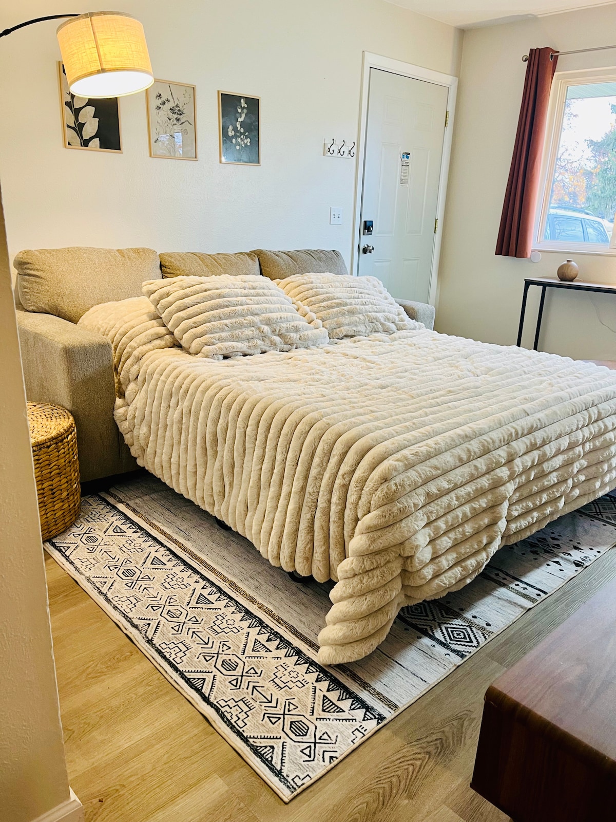 Trae a todo tu equipo a tu nuevo hogar lejos de casa. ¡Nuestro bungalow ha sido diseñado y decorado profesionalmente con un acogedor tema del suroeste! Todo el espacio es todo tuyo con 2brs - MBR w/ Queen, 2nd BR w/ Full & Twin Trundle, todos los colchones de espuma viscoelástica y juegos de sábanas suaves. Sala de estar con Smart TV de 55 pulgadas. Nuevo sofá modular otoño 2025, silla plegable. Espacio de trabajo dedicado y wifi rápido. NUEVA cocina totalmente equipada con electrodomésticos de acero inoxidable, lavadora y secadora también en el sitio. Gran patio vallado para mascotas. ¡Yuju!