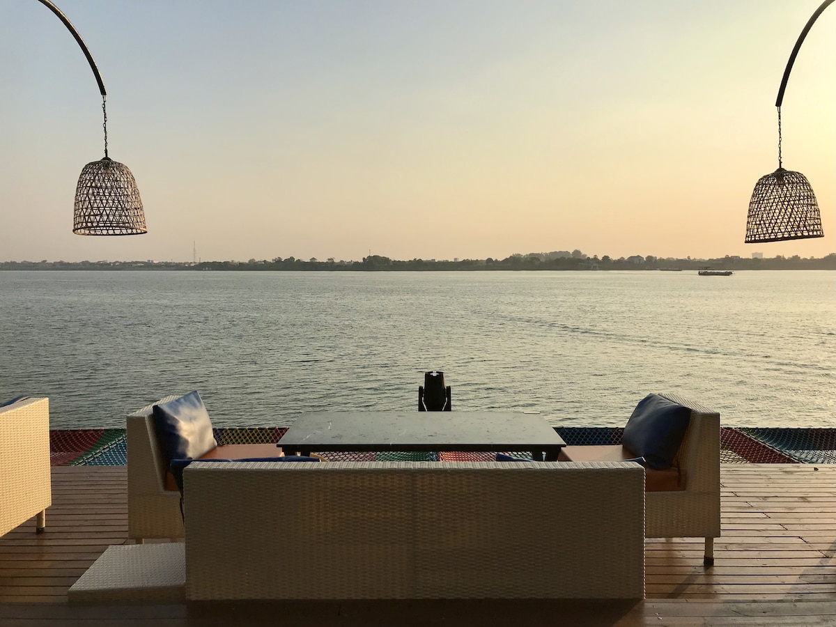 Apartamento loft nuevo, totalmente amueblado y equipado con electrodomésticos de ahorro de energía, interior con un toque zen japonés minimalista. La hermosa ventana alta da directamente al río Mekong, lo que te da la sensación de que estás en algún lugar lejos de la ciudad mientras estás a solo 15 minutos en auto del centro de la ciudad. El complejo tiene varios acres de jardines ajardinados y un paseo marítimo junto al río. Las instalaciones incluyen 3 piscinas, gimnasio, sauna, cafetería, espacio de trabajo y un restaurante flotante.