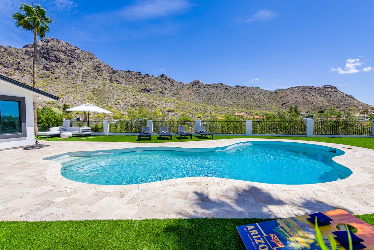 ¡Disfruta de impresionantes vistas sin obstáculos de 270° convenientemente ubicadas justo en medio del área metropolitana de Phoenix! Espectaculares amaneceres/atardeceres en una pintoresca comunidad de mediados de siglo en la cima de una colina, enclavada en la cordillera North Central Phoenix. ¡Date un paseo por uno de los muchos senderos recreativos mejor valorados cercanos o relájate junto a la piscina! 2 camas (king y queen), 1,5 baños. ¡Bicicletas de paseo y patinetes eléctricos con cascos disponibles para su uso! Mejoras recientes. ¡A poca distancia en coche de cualquier atracción importante de la ciudad!