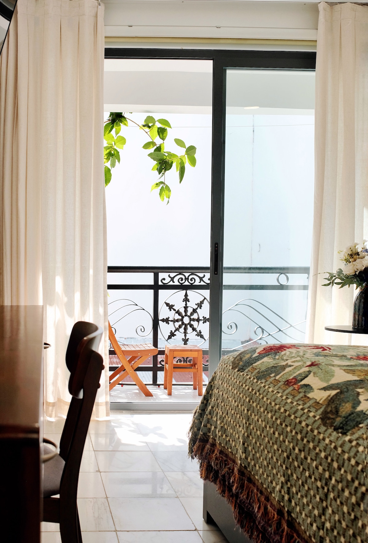Vietnamese-Mediterranean Studio in central: • 2 km to Tan Son Nhat Airport & Phan Xich Long food street • 3 km to District 1 & major attractions, 4 km to Notre-Dame Cathedral Surrounded by popular Vietnamese eateries • Spacious bed (up to 3 guests) • Modern bathroom with bathtub & toiletries • Parking for cars & motorbikes • Café downstairs & photogenic corners • Projector, water purifier, coffee machine Enjoy thoughtful hospitality blending international touches with classic Vietnamese charm.