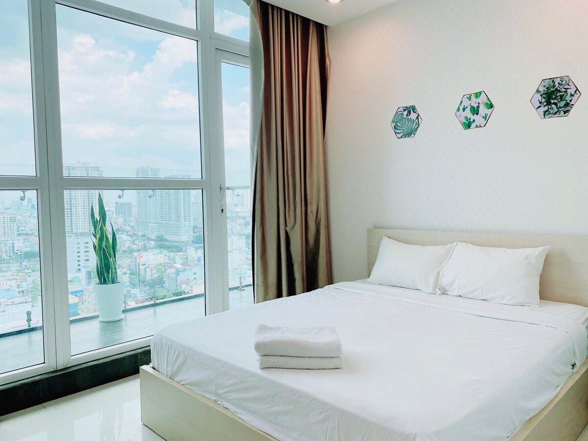 Căn hộ 35m2, Với tầm nhìn đẹp, bạn có thể nhâm nhi chút cafe Việt Nam và dùng vài cái kẹo rồi ngắm phố phường Sài Gòn nhộn nhịp và sinh động. Đặc biệt vào những ngày giáp Tết, chỉ cần bước ra khỏi toà nhà là Chợ Hoa Xuân rực rỡ màu sắc, bạn sẽ tha hồ thưởng thức trọn vẹn Tết Việt Nam. Căn hộ có đầy đủ tiện nghi như chính ngôi nhà của bạn, đi kèm là tiện ích phòng Gym, khu hồ bơi và phơi nắng hoàn toàn miễn phí.