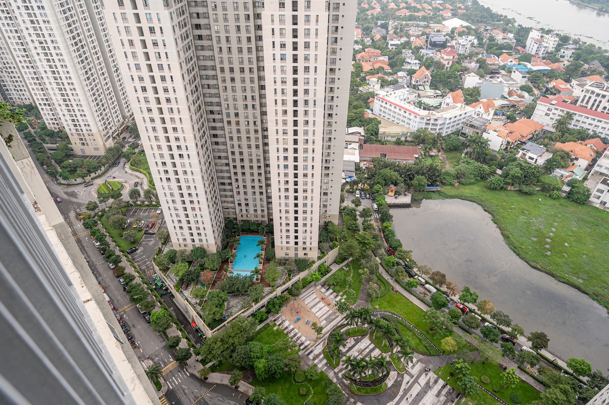 El nombre del edificio es "MASTERI AN PHU, SOL lobby" en Thao Dien, distrito 2, una zona favorita de extranjeros con centros comerciales cercanos: - En el piso 36, Riverview desde el dormitorio principal. - Piscina y gimnasio de 8am a 9pm - Lavadora y secadora. - Cocina totalmente equipada. - Guardias de seguridad del edificio las 24 horas del día, los - Tienda de conveniencia 24/7 - Sin llave con código. - Autobús gratuito al centro comercial Estella cerca. - Ofrecemos limpieza gratuita para reservaciones de más de 4 noches. Si es necesario, puedes notificarlo con 1 día de anticipación.
