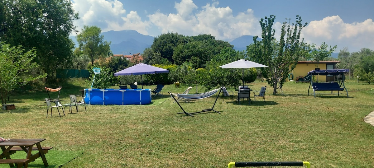 Nuestros amigos cuando nos visitan nos dicen que es un resort ideal. Realmente la casa es una casa de dos plantas de las dos que existen en una parcela de 1200 metros cuadrados con mucha vegetación y piscina. Se encuentra en una bonita ubicación a solo 300 metros de una maravillosa casa de playa a unos 800 metros del centro de las cosmopolitas Platamonas. Hay muchos lugares para ver cerca, como sitios arqueológicos, pueblos tradicionales junto al mar y la montaña en Olimpo, la montaña de los dioses.