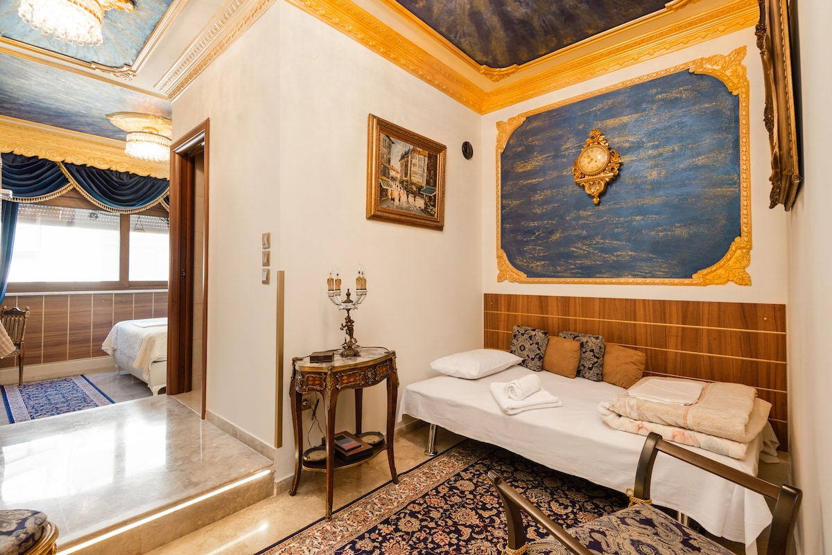 Creamos una suite única con elementos vintage, que vincula lo «viejo» con el «nuevo» estilo de decoración y siempre centrándonos en el lujo al mejor precio posible. La suite Vintage se encuentra en el centro de la ciudad, junto a varios lugares de restauración y entretenimiento, lo que ofrece al visitante tantas opciones como sea posible. La suite es adecuada para 3 personas, especialmente para parejas, y es una experiencia de estancia sin precedentes.