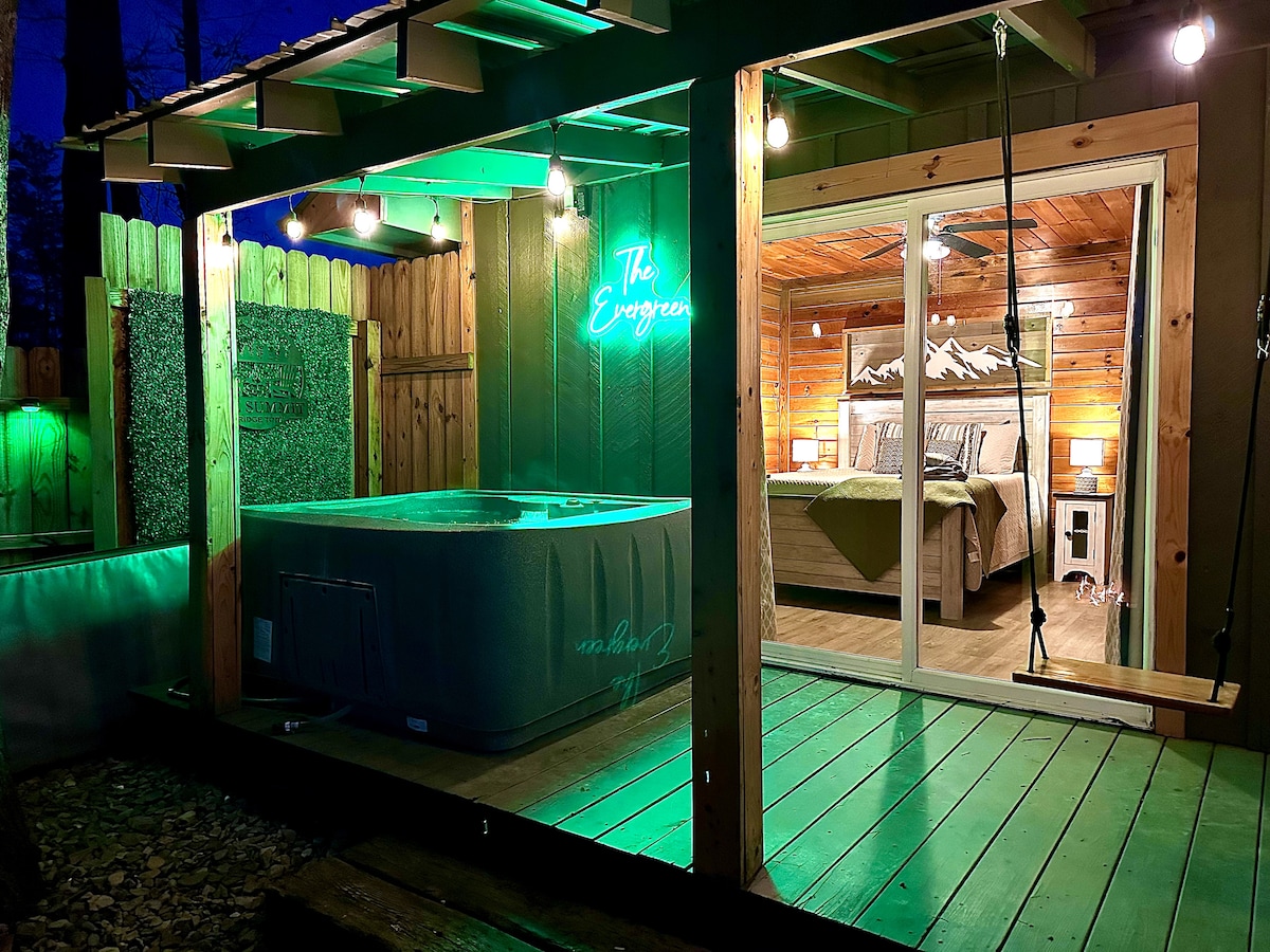 «The Evergreen»: una pequeña cabaña con grandes comodidades y un toque moderno en el corazón de Pigeon Forge, a 5 minutos de la autopista y a 7 minutos de «The Island». Ubicada en el pequeño pueblo de cabañas «The Summit at Ridge Top», compuesto por otras 5 pequeñas cabañas con privacidad incorporada en cada cabaña. Enormes vistas del monte Leconte y las montañas Smoky. Fogata, jacuzzi y columpios bajo un porche cubierto. Bañera de hidromasaje. Ducha a ras de suelo. Come en la cocina completa con barra de desayuno/espacio de trabajo. Chimenea. Comodidad. Estilo. Acogedor. En el corazón de PF.