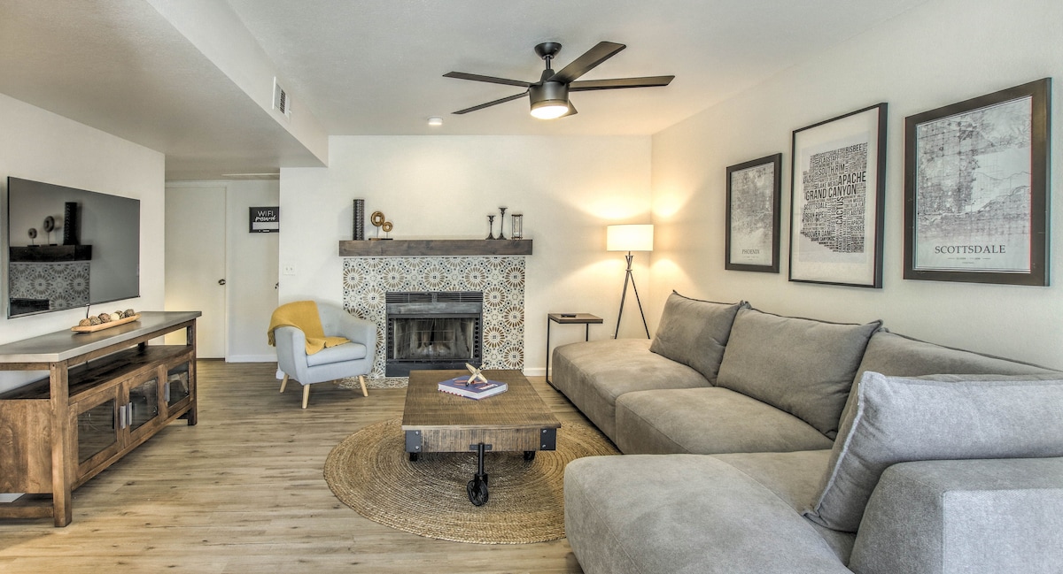 Obras de arte vintage y elegantes accesorios de madera complementan los espacios modernos que se encuentran en toda esta casa. Los azules y grises pastel acentúan la decoración dándole un ambiente rústico y sofisticado que refleja el encanto de Arizona. La cama tamaño king y las camas individuales ofrecen alojamiento individual para 4 personas en 2 habitaciones privadas. Las camas individuales se pueden convertir en una cama tamaño king, lo que es ideal para parejas. Un sofá cama extraíble tiene capacidad para 2 huéspedes adicionales. Abre la pared corrediza de vidrio para acceder a tu oasis privado en el patio con zonas de ladrillo y césped, paredes cubiertas de enredaderas, barbacoa de gas, chimenea y asientos en el patio. Kirkland Place se encuentra a menos de 1 milla del campus estatal de Arizona, cerca del centro de Tempe, AZ. En un radio de 1 a 2 millas tienes fácil acceso a senderos para caminar o montar en bicicleta, paseos en bote y eventos especiales en Tempe Town Lake. Las compras, los restaurantes y el entretenimiento en Tempe Marketplace están a unas manzanas de distancia, a aproximadamente 1 milla. El tren ligero y la ruta de transporte gratuito Orbit se encuentran a unas manzanas. Estás a unos 7-10 minutos en coche del casco antiguo de Scottsdale, que es un gran atractivo para cenar y disfrutar de la vida nocturna. Considera Kirkland Place como tu cuartel general para el entrenamiento de primavera de los Cubs, que se encuentra a menos de 2 millas. Esta unidad tiene una ubicación céntrica cerca de 3 salidas de la autopista, el bucle 101, 202 y el 60. El aeropuerto de Sky Harbor está a 7-10 minutos en coche. El campus principal de ASU, el estadio Sun Devil y las tiendas y la vida nocturna del centro de Mill Avenue están a menos de una milla. Varias otras instalaciones de entrenamiento de primavera se encuentran a unas 5 millas. El Phoenix Open, los campos de golf públicos, las tiendas, los restaurantes y las rutas de senderismo de clase mundial no están lejos. Acceso exclusivo completo y privado al apartamento de dos dormitorios y dos baños con lavadero interior privado con lavadora y secadora de tamaño completo. Hay una pequeña zona de patio trasero para el entretenimiento privado que incluye un pequeño patio, sombrilla de mercado, chimenea y parrilla de carbón. Hay una plaza de aparcamiento cubierta asignada y plazas descubiertas por orden de llegada en el estacionamiento. La piscina comunitaria está al otro lado del estacionamiento con acceso con llave las 24 horas, los 7 días de la semana. El horario de silencio del complejo comienza a las 22:00 horas. Aunque no hay administración en el lugar, la mayoría de los vecinos son residentes a tiempo completo, así que sé respetuoso. El complejo consta de casas privadas, muchas de las cuales son alquileres. Hay una mezcla de jubilados, estudiantes universitarios y jóvenes profesionales que hacen de Casitas East su hogar. Estoy disponible por teléfono, SMS o correo electrónico e intentaré responder a tus preguntas el mismo día. Vivo a unas manzanas de distancia y puedo estar allí rápidamente si surge algún problema. El alojamiento se encuentra en un barrio tranquilo situado en el centro del valle del sol. La Universidad Estatal de Arizona, Sun Devil Football y el distrito comercial de Mill Avenue se encuentran justo al final de la calle. Ubicación perfecta para el entrenamiento de primavera con el estadio de los Cubs a solo 2 millas de distancia. Tempe Town Lake se encuentra a menos de 1 milla, así como tiendas y restaurantes en Tempe Marketplace. Esta es la ubicación perfecta para maratones como Ironman y Rock n Roll. ¡A solo minutos del casco antiguo de Scottsdale y mucho más! Hay muchos Uber y Lyft. La ruta de autobús Orbit gratuita de Tempe y la parada de autobús están a poca distancia a pie del apartamento y te llevarán al distrito comercial de Mill Avenue, a los partidos de fútbol y al mercado de Tempe, entre otros lugares. La ruta y los mapas están disponibles en línea. El tren ligero es accesible a pie y está a unas manzanas del complejo, en la intersección de McClintock y Apache Blvd. Hay bicicletas y patinetes disponibles para alquilar en casi todas las manzanas. Hay un centro de alquiler de coches Enterprise justo al final de la calle, en McClintock Drive, si necesitas alquilar un coche. El termostato se apaga cuando no hay nadie alojado en el alojamiento. Para encenderlo, solo tienes que tocar la pantalla y se iluminará. A continuación, puedes encender la calefacción o la refrigeración y ajustar la temperatura a tu gusto pulsando las flechas hacia arriba o hacia abajo. Apágalo cuando te vayas o enciende el aire cuando no lo uses.