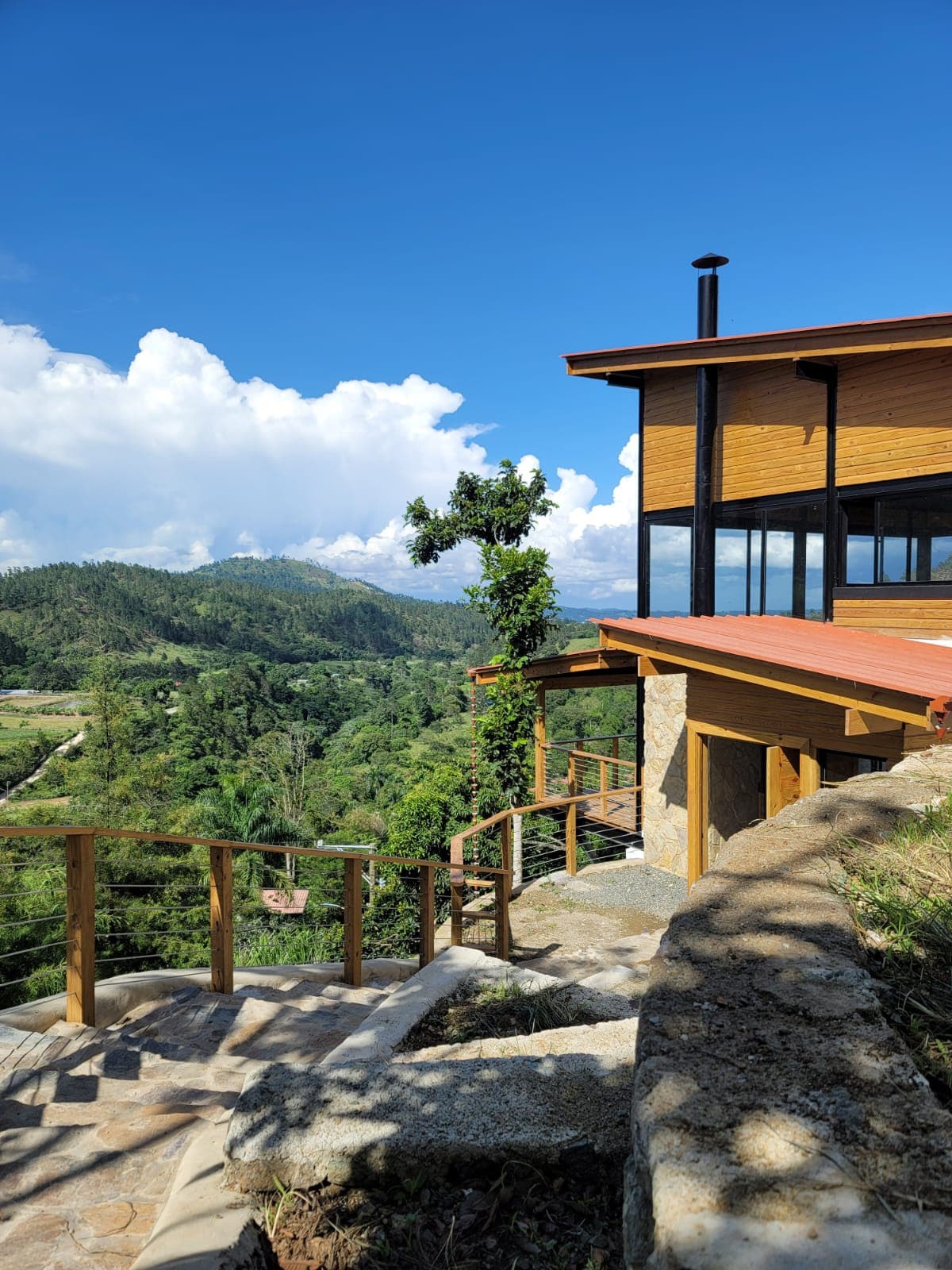 Espaciosa cabaña con vista a la montaña!! Vasta y acogedora, esta casa estilo chalet de 4 habitaciones distribuidas en 2 niveles, está localizada en el verde poblado de Las Guaranitas, La Vega, en un punto medio entre el pueblo de Jarabacoa, el más completo destino de turismo de montaña en la República Dominicana, y la ciudad de Santiago de los Caballeros, urbe de gran interés histórico-cultural, exquisita oferta gastronómica y vibrante vida nocturna.