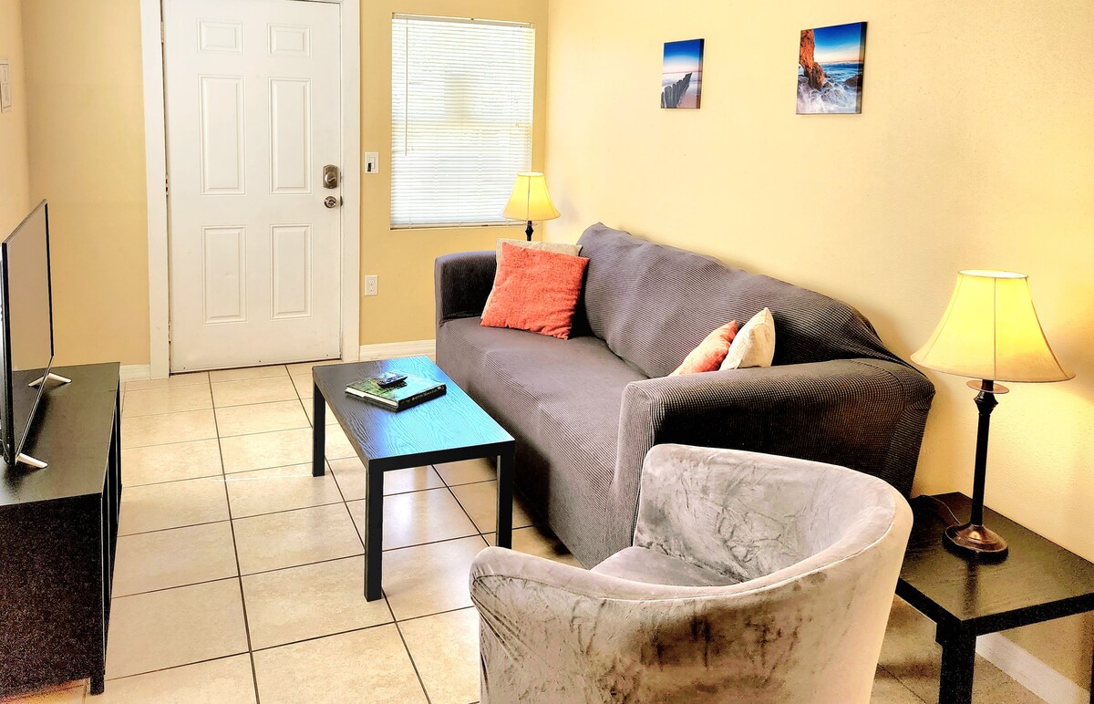 Get ready to enjoy your vacation in this chic and comfortable apartment in the heart of Orlando. Located directly in front of the Florida Mall, this home is a convenient 15-20 min drive from all the major attractions. This is a private apartment, with it's own free parking and fenced in patio. The open layout, with private full kitchen and private bathroom makes it perfect for couples, solo adventurers, and business travelers. The stay includes FREE wifi, Netflix, and full stocked kitchen