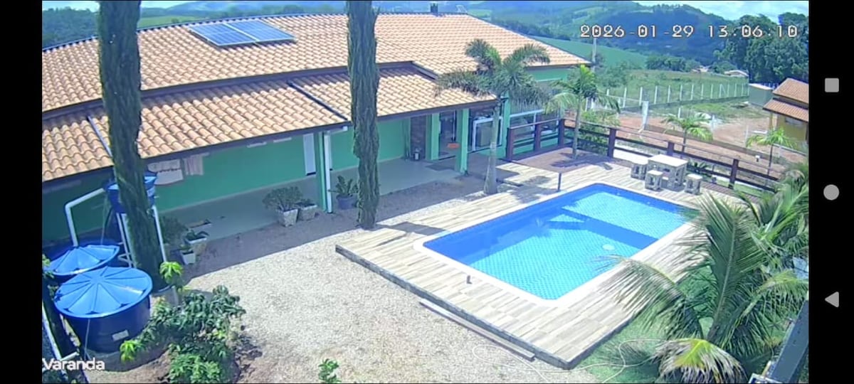 Mi deseo es que este espacio te proporcione a ti y a tu familia, ¡días muy felices! Estamos cerca de la capital de SP (101 km). Tenemos aquí: - Piscina, ducha y cascada. - Barbacoa - Cocina completa - Ventilador en todas las habitaciones - Lago privado para el sistema de pesca. - Bosque nativo para senderos - Agua natural, sin productos químicos. - Aire fresco de las montañas de eucaliptos. - Wifi y escritorio para trabajar o estudiar. Cerca: paseos a caballo, cascadas y una de las tirolinas más grandes del mundo