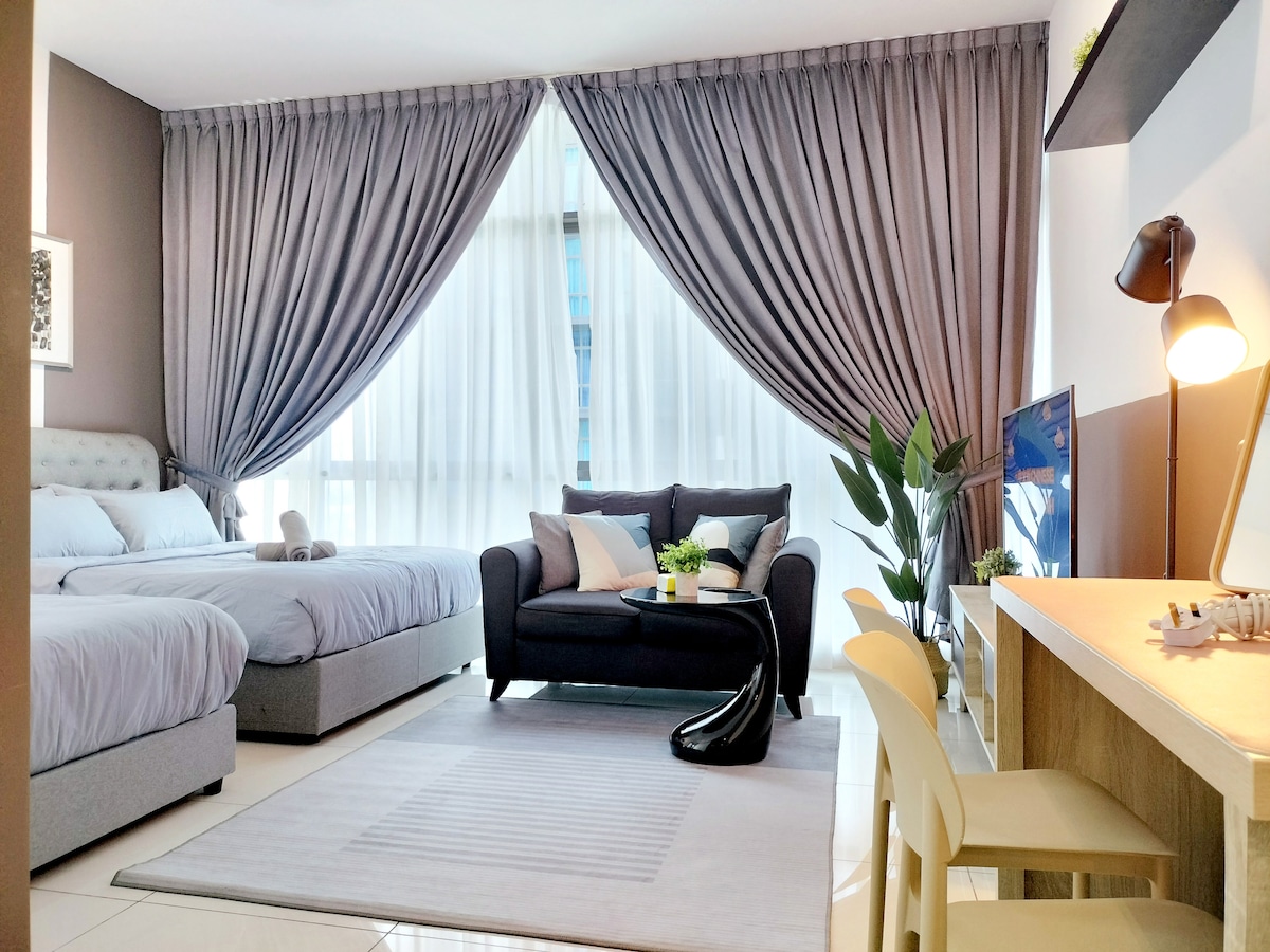 (1+1 dormitorios y 1 baño) Apartamento contemporáneo, moderno y acogedor en el corazón del centro de la ciudad de JB. Adecuado para familias de 4 personas, amigos y grupos de negocios. **A 5 minutos de CIQ, City Square, KSL, Pelangi y Larkin **A 8 minutos de Mid Valley Southkey, Larkin Sentral y Sentosa **A 15 minutos en coche del centro comercial Paradigm, Sutera, Skudai y Mount Austin Televisor inteligente✔ 4K. Wifi de✔ alta velocidad y mesas de trabajo con enchufe de extensión. ✔ Lavadora ✔ Aire acondicionado en todas las habitaciones. Consola ✔ Atari, Mahjong y juegos de mesa. ✔ Aparcamiento GRATUITO para 1 coche.