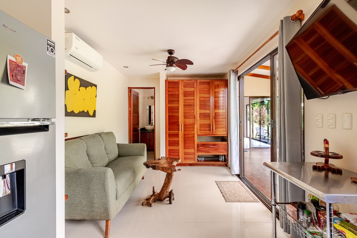 Casita Colibrí está escondida en una tranquila ladera cerca de los servicios de la ciudad. Disfruta de aire acondicionado, un loft con brisa y vistas a la selva con avistamientos frecuentes de vida silvestre. Cocina en casa en la cocina bien equipada o relájate con épicas puestas de sol en la amplia terraza. Situada a solo 1,6 km de la playa y a 1 km del mercado, es privada pero está conectada. El wifi de fibra óptica rápida con batería de reserva te mantiene en línea, incluso durante breves cortes de energía.