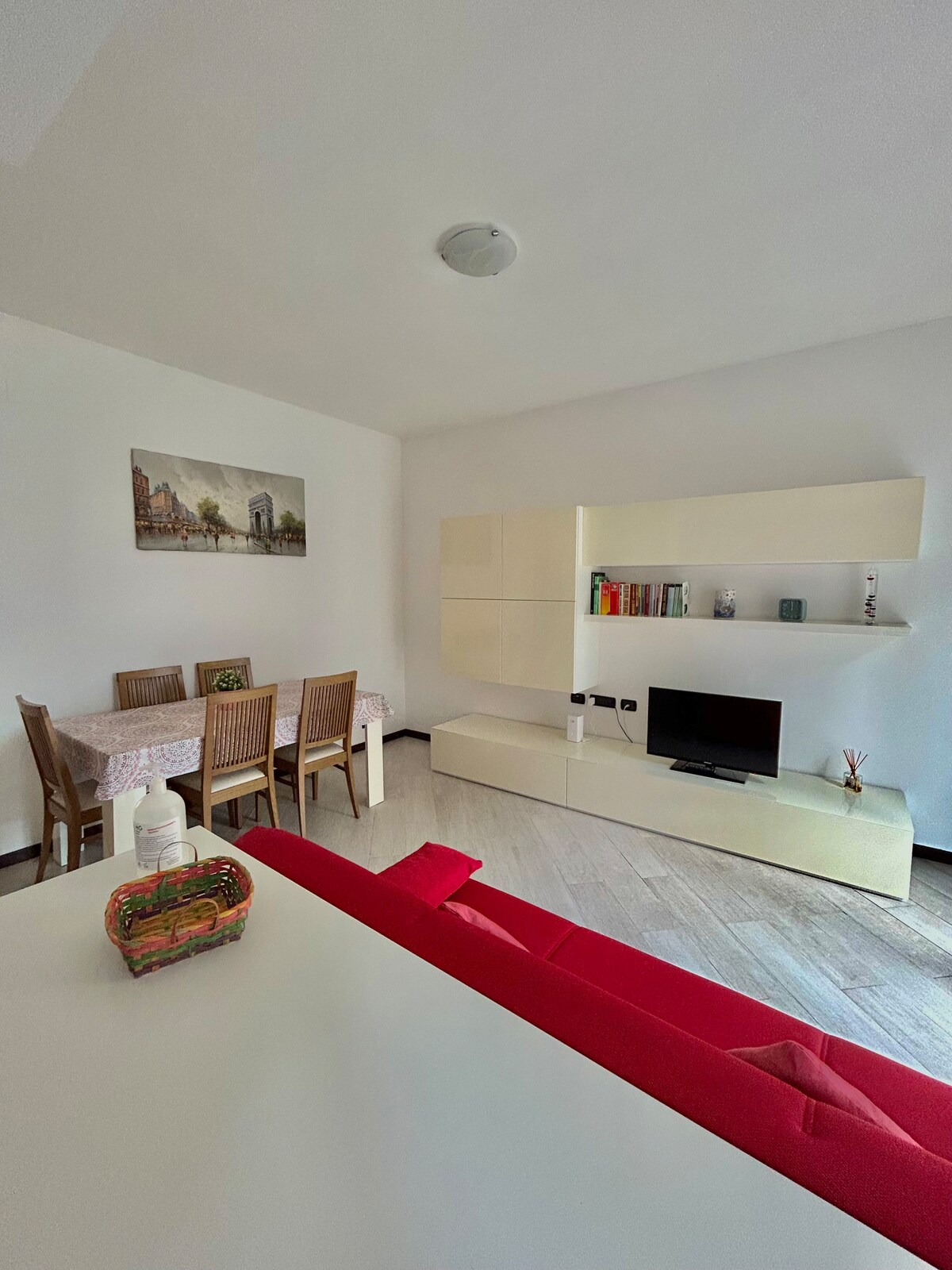 Amplio apartamento de un dormitorio completamente reformado. Cerca de la estación de tren con pasante que permite un fácil acceso al centro de Milán, supertrada y salidas de la autopista, tiendas y centro comercial. Amplia y bien organizada sala de estar, amueblada con buen gusto, sofá cama, TV de 55 pulgadas, cocina equipada con placa de inducción, incluyendo utensilios. Baño con ducha grande, espuma de ducha, champú, secador de pelo y lavadora disponible. Dormitorio grande con armario y cajones.