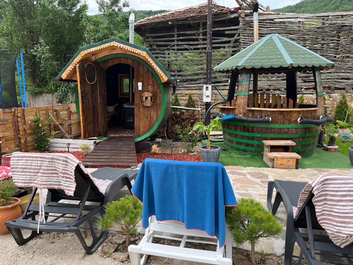 Tómate un descanso del trabajo, el ruido y la contaminación de las ciudades en una finca única en el hermoso pueblo de Slavinja en Stara Planina. En una propiedad espaciosa donde nuestra propia cabaña está hecha de madera local, tienes todo lo que necesitas, además de una vista de la hermosa montaña Vidlic, un río para 5 minutos a pie, su espacioso patio privado, una pérgola de vacaciones, preparación de alimentos. Además, está cerca del famoso Slavinjsko Grlo, un arroyo mnostvo y un río con cascada. ¡Una escapada única para el alma y el cuerpo!
