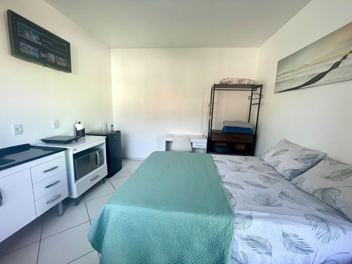 *Por favor, revisa las fotos y la descripción ANTES DE RESERVAR* Moderno y acogedor estudio en Villa Mole, con la MEJOR vista al atardecer de Lagoa. Ubicado a 5 minutos a pie de la famosa Lagoa (bares, comida, música) y Praia Mole (servicios, surfistas). Los huéspedes tienen ESTUDIO PRIVADO: entrada digital privada, cama COMPLETA, cocina americana con media nevera (y microondas, placa calefactora, ollas/sartenes, utensilios), mesa de comedor, baño nuevo (ducha caliente, toallas), balcón. Los huéspedes COMPARTEN el acceso a las áreas sociales/externas: JACUZZI y terraza, barbacoa/cafetería, chimenea, gimnasio, lavandería, plancha