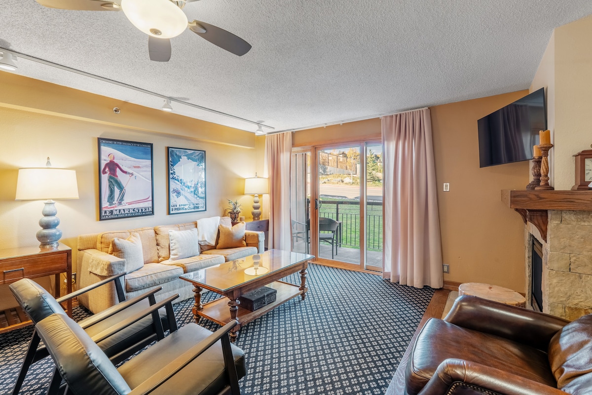 Nuestro impresionante apartamento renovado de 2 dormitorios y 2 baños ofrece una vista panorámica de las pistas de esquí, Mt. y un exuberante campo de golf. Plano de planta abierto, obras de arte de lujo y una acogedora chimenea, es el ambiente perfecto. La cocina gourmet con electrodomésticos de acero inoxidable y encimeras de granito espera sus aventuras culinarias. Entretenimiento con televisores de pantalla plana en el salón y en los dormitorios. La lavadora/secadora en la unidad garantiza comodidad. A 2 minutos del ascensor Two Creeks. No se permite fumar ni mascotas por HOA. No hay servicios de SMC.