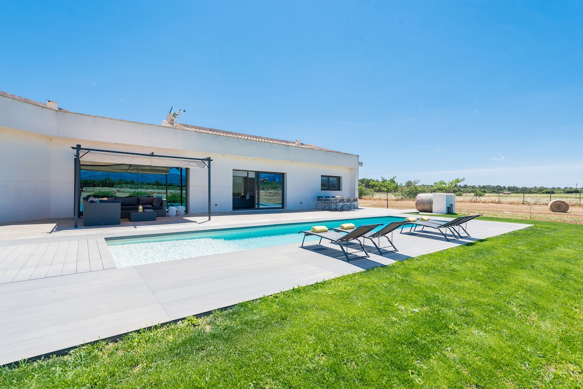 Preciosa villa de lujo situada a 5 minutos de playas de Muro y Can Picafort. La casa reformada con estilo contemporaneo se encuentra ubicada en una zona tranquila cerca de una de las mejores playas de la isla. Dispone de una piscina privada con jacuzzi, amplia zona de cesped y jardin, con terraza y barbacoa. La casa dispone de todas las comodidades (wifi de alta velocidad,Smart TV, y Aire acondicionado en todas las estancias.). Solo relajese y disfrute de una estancia inolvidable!