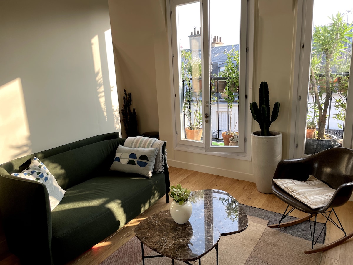 Disfruta de nuestro elegante apartamento parisino. ¡También nos complace compartir nuestros 15 años de experiencias parisinas, así como nuestros consejos y hábitos con respecto a las actividades en nuestro vecindario y en París ! El apartamento está completamente amueblado y ofrece una cocina abierta a la sala de estar, un dormitorio con una cama doble de gran calidad (160×200) y un baño. ¡El departamento está ubicado en el cuarto y último piso (sin ascensor: no recomendado para equipaje XXL)!