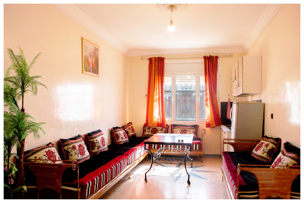 Ce logement paisible est idéal pour ceux qui recherchent calme et détente, loin du bruit et de la foule. Situé dans un village authentique près de Taghazout, il offre un séjour confortable pour les familles, les couples et les voyageurs en quête de nature. Vous pourrez profiter de belles balades, de paysages naturels et de couchers de soleil inoubliables.