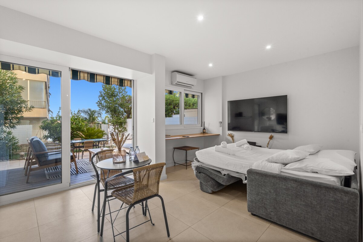 Relájate en este espacioso apartamento de 74 m² de dos dormitorios, recién renovado, que combina elegancia y comodidad con acceso directo a la playa. Te encantará la vista panorámica del mar y las islas Lérins, así como la terraza soleada con vistas a un entorno verde y tranquilo. Disfruta de la proximidad inmediata de las tiendas de la ciudad mientras te alojas junto al mar. Con una ubicación perfecta, es una base ideal para congresos, a solo 15 minutos a pie del Palais des Festivals.