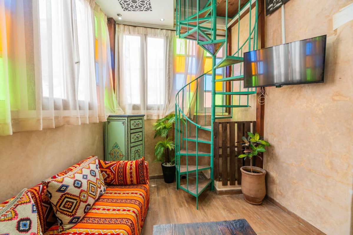 Wooden Heaven es un apartamento con una temática única en el centro de Esauira, con un diseño abierto y una amplia terraza con magníficas vistas panorámicas a toda la ciudad. Con su énfasis en la madera, el interior irradia calidez y encanto, ofreciendo un retiro sereno. Los huéspedes pueden disfrutar de vistas de casi 360 grados, perfectas para presenciar impresionantes amaneceres y atardeceres. Este apartamento promete una estancia verdaderamente excepcional, combinando el confort moderno con vistas incomparables del vibrante paisaje urbano de Esauira.