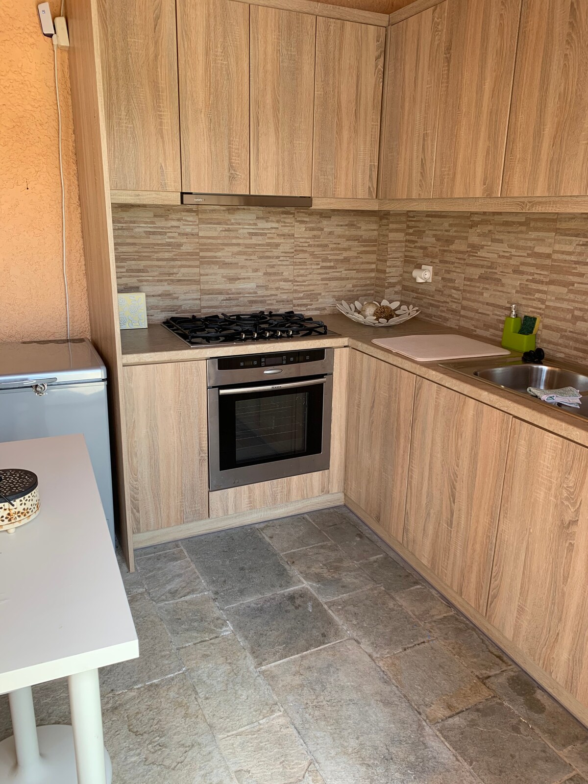 La casa fue construida antes de 1940 y en ese entonces solía ser la casa del maestro del pueblo. El sótano era el trastero de la resina. Solo en 1975, mi abuelo, Dimitris, también pudo comprar la casa y el sótano, con el fin de usar todo el edificio como trastero. Luego, en 2019, mi familia decidió transformar el piso de arriba como una habitación de Airbnb y el sótano como trastero para el vino y el aceite.