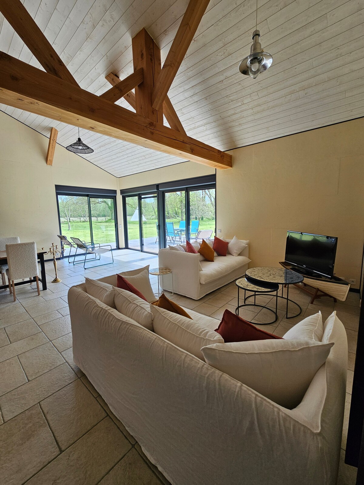 A 1h30 de Paris, maison de charme dans un village typique et jardin entièrement privatif avec jacuzzi, ping-pong, trampoline et piscine. Maison douillette car bien isolée et bien chauffée avec une grande pièce à vivre très conviviale. Belle terrasse exposée plein sud avec espace repas et bains de soleil. Immense jardin autour de la maison Wifi haut débit et charge pour voiture électrique sur demande. Piscine ouverte du 30/04 au 30/09. Animaux bienvenus mais déconseillé pour les animaux fugueurs
