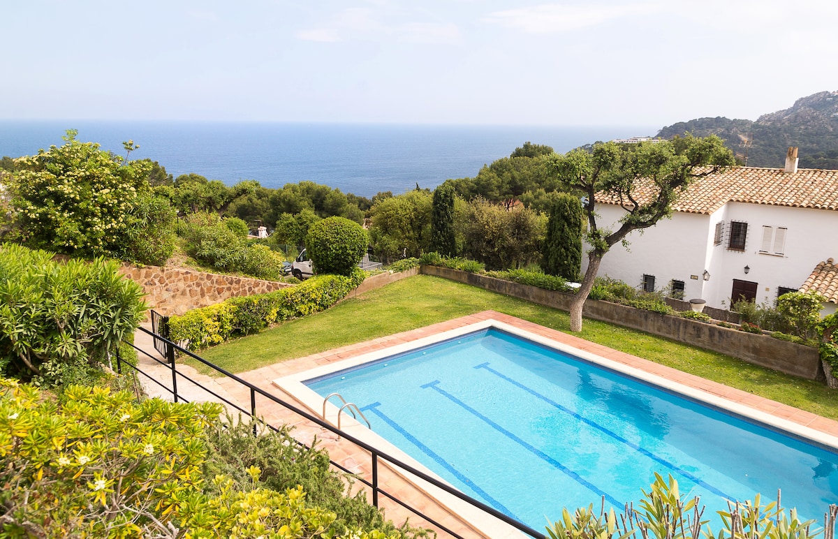 Charming house with sea views. Situated in a quiet location with a garden-an ideal place to relax. A 5 minute walk from the centre of Begur and 20-25 minutes from the beach Sa Riera. Alternatively it's a 3 minute drive to the beach Sa Riera or there's a bus service that stops just outside the property, which costs 1'5€ (from june to 11th septembre aproximately) The house is situated in a quiet area which is ideal for both couples and families.