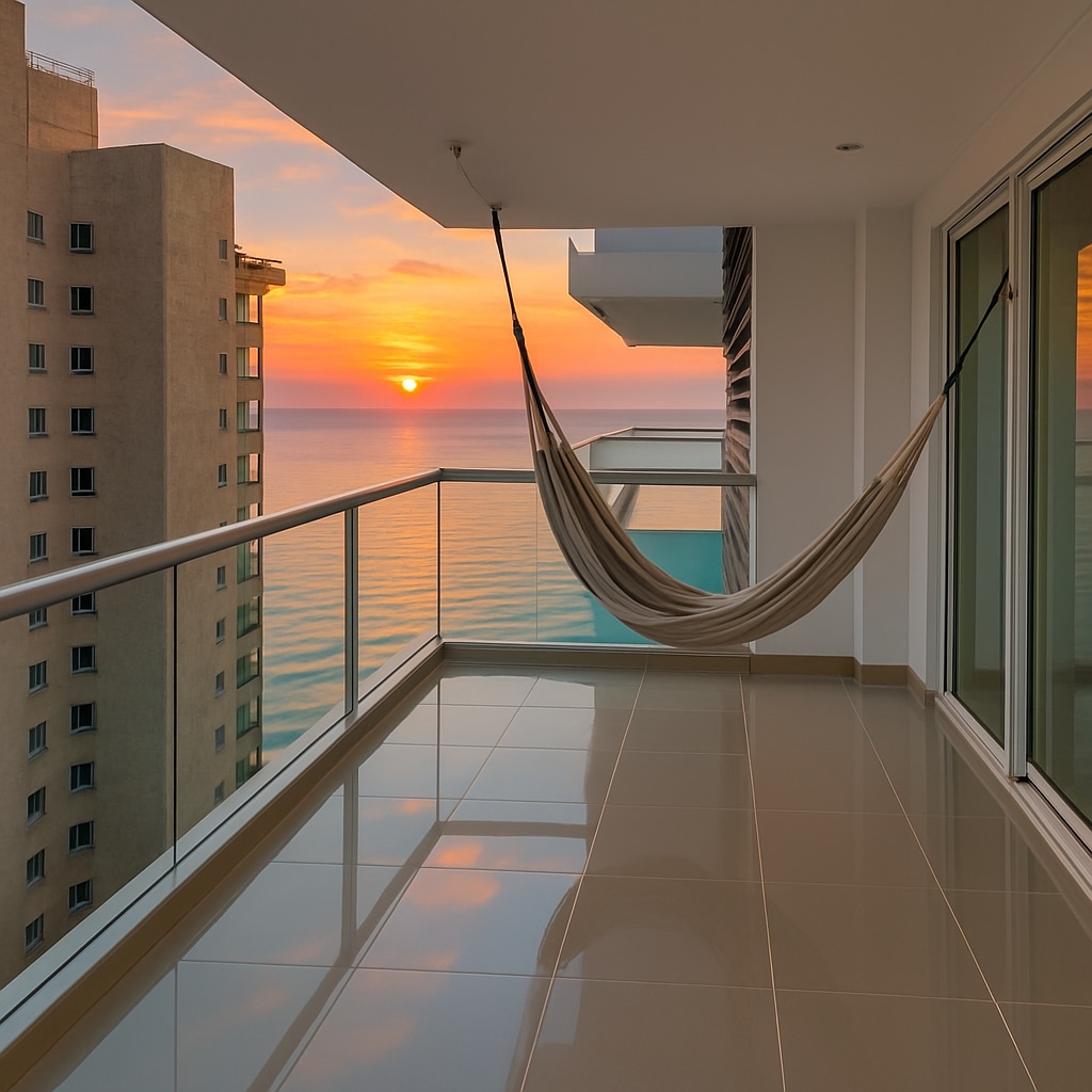 🌟 HOSTY HOME: Tu hogar fuera de casa. 🏡 🏖️ Apartamento con 🛁 jacuzzi privado, terraza con hamaca, 🍳 cocina totalmente equipada, 🏖️ kit de playa completo y acceso a 🏊♂️ 3 piscinas. A 100 m de la playa y 10 min del aeropuerto. Incluye 🧴 amenities, 🧼 toallas de cuerpo y playa. Edificio con 🏋️♀️ gimnasio, 🛒 mini market, 🚗 parqueadero gratis, 💇♀️ peluquería, turco y sauna (con costo). Cerca de 🛍️ supermercados y restaurantes IDEAL PARA ESTADÍAS CORTAS Y LARGAS. ¡Bienvenido! 🌅