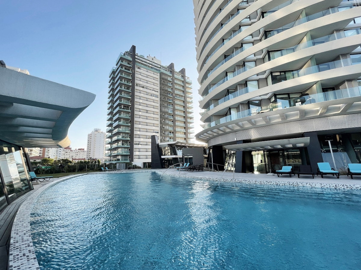 Disfruta de Punta del este todo el año en este alojamiento tranquilo y cerca de todo. Apartamento moderno y familiar en el quinto piso, con cocina equipada, estacionamiento cubierto fijo, spa todo el año, cercano a la playa brava parada 2 / playa mansa parada 2, cerca de la terminal de autobuses de PDE y otros servicios necesarios. ¡Perfecto para tu estadía en Punta del Este!