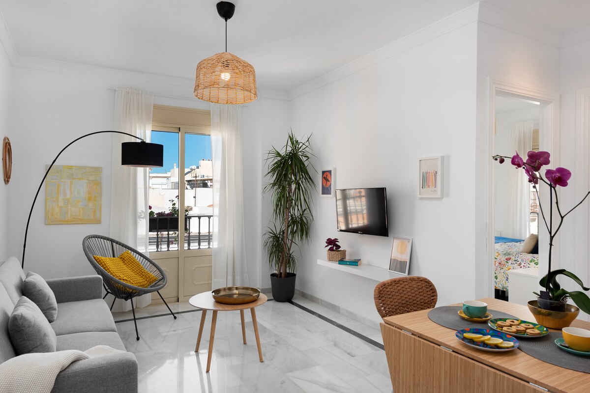 Bonito y acogedor apartamento ubicado en pleno centro de Nerja, a tan sólo 300 metros del Balcón de Europa, sus calas y playas (3 minutos andando). Calle muy turística con multitud de servicios (restaurantes, tiendas, zona de ocio, etc.) El apartamento está situado en la segunda planta de un pequeño edificio. Consta de 1 dormitorio, 1 baño con ducha amplia y 1 salón comedor-cocina. Ideal para parejas. Muy luminoso,nuevo y confortable.