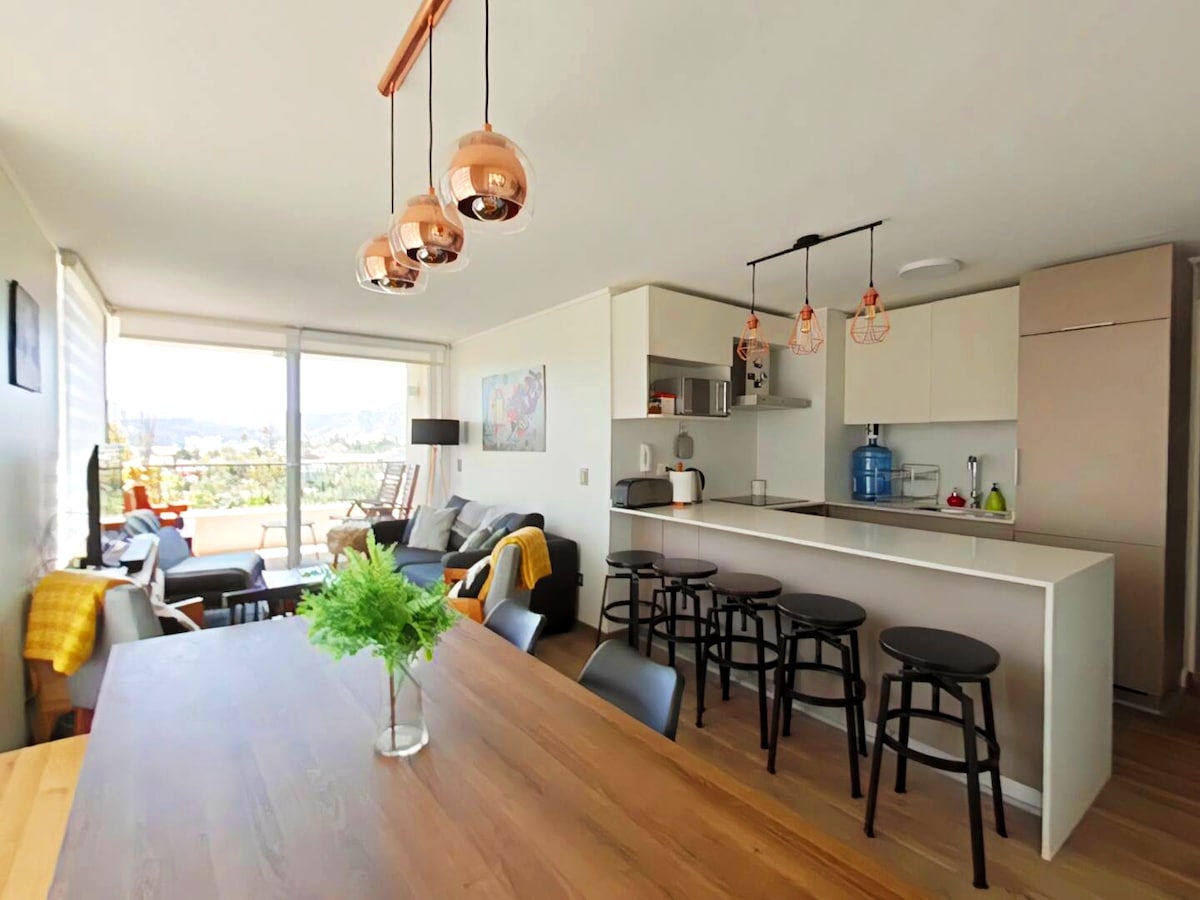 Disfruta de la tranquilidad y el estilo en este elegante departamento de 2 dormitorios y 2 baños. Con muebles de lujo y una amplia terraza equipada con parrilla en obra, ofrece vistas inigualables al mar. A solo 5 minutos a pie de la playa. ¡Es perfecto para una escapada! Ubicado en un exclusivo condominio con diseño vanguardista, este espacio conserva el encanto del litoral chileno. Disfruta de amenidades como sala de juegos, áreas verdes con senderos, piscina y fogón al aire libre.