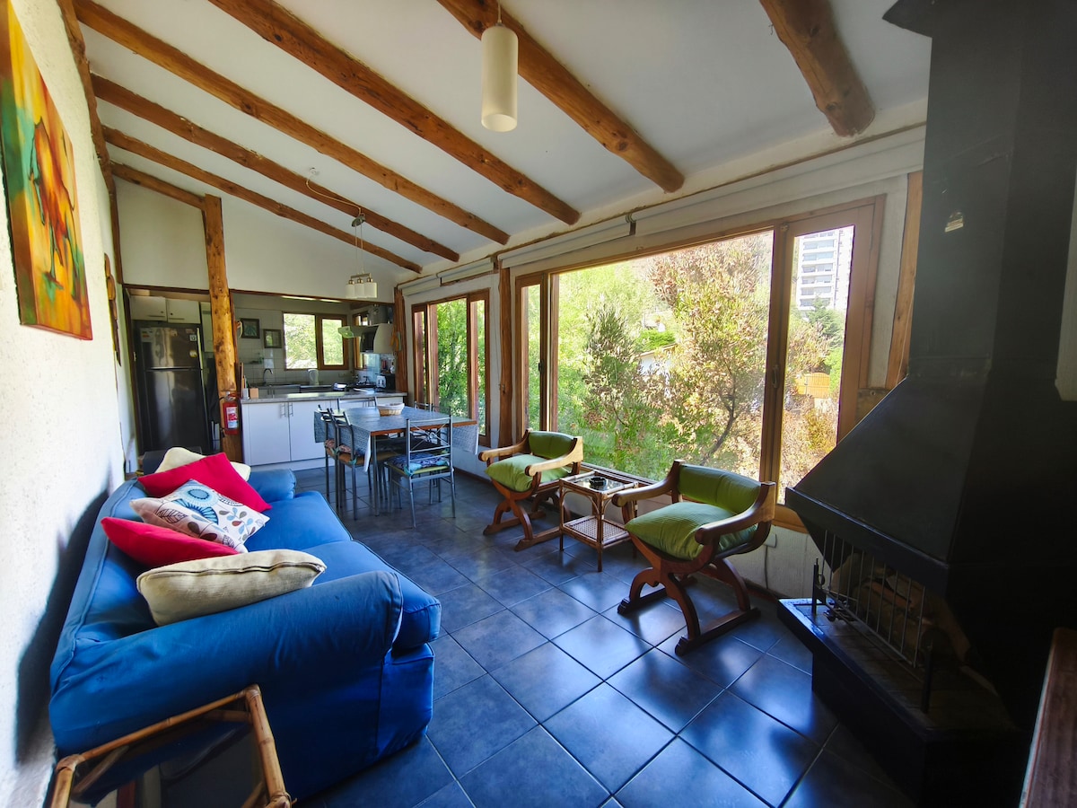 Preciosa casa a dos cuadras de la playa chica,5 minutos caminando recto, a una cuadra de la plaza y comercio, sector residencial, muy tranquilo y seguro, estacionamiento para dos autos, vigilancia en condominio. Cerca de todo con un lindo entorno y vista a las montañas, lindo jardín , amplia y luminosa terraza con barbecue, cómoda.