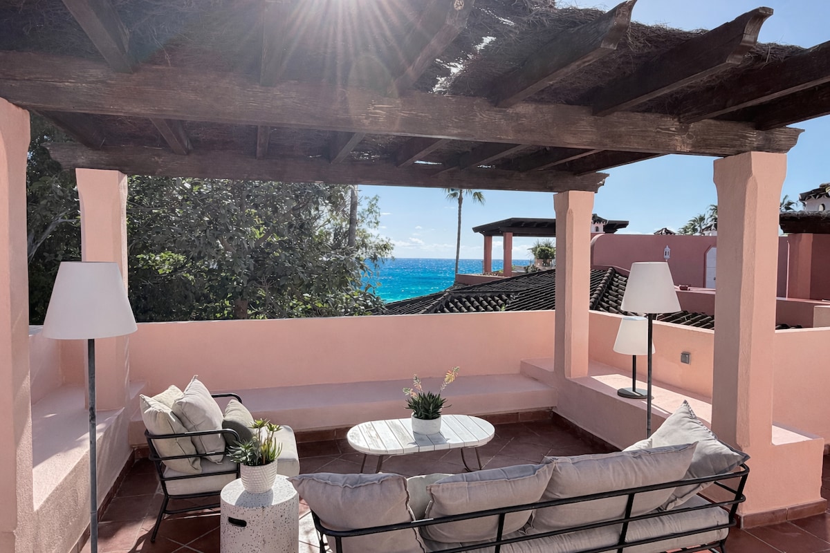This beautiful apartment exudes elegance and comfort. Nestled in the heart of a coastal paradise and situated just a 3 min stroll from the beautiful shores of Saladillo beach. With close proximity to some of the most coveted destinations on the Costa del Sol guests will find endless ways to enjoy their stay. An ideal home base for exploring the regions historic landmarks, pristine golf courses and Michelin-starred restaurants and bars.