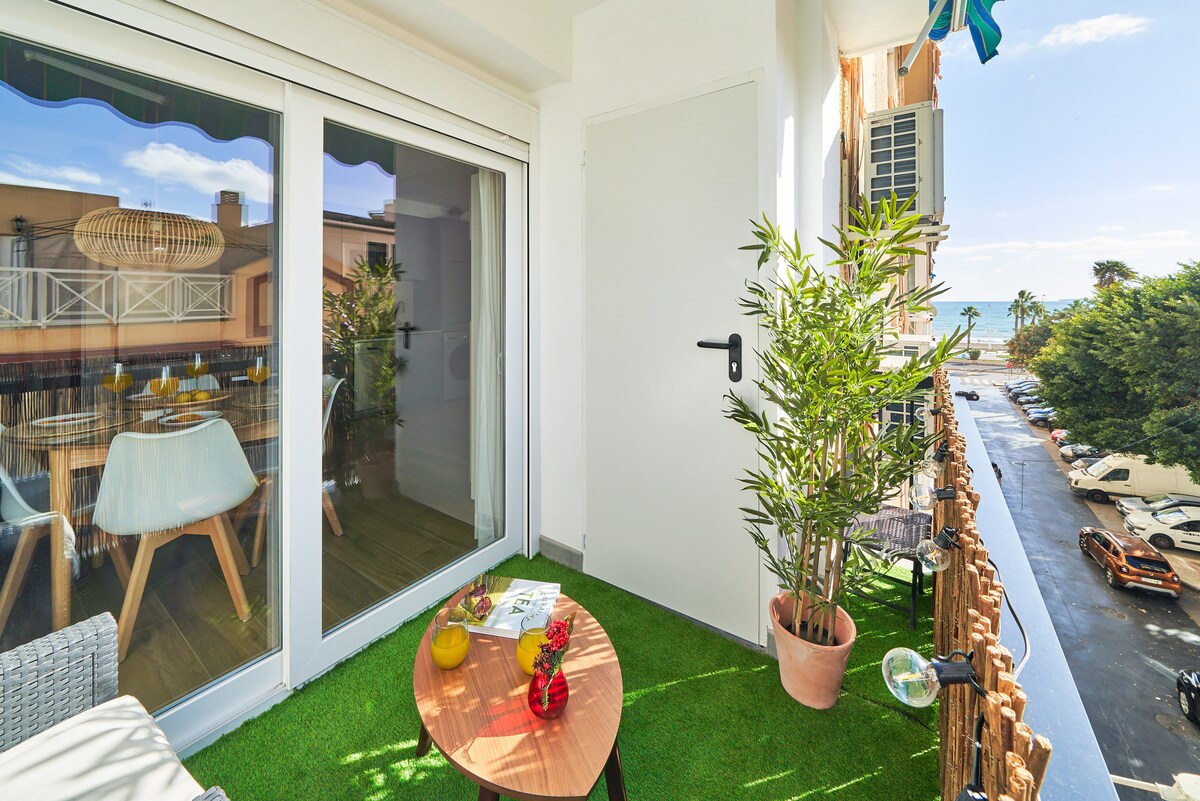 Frente a la playa. Terraza y vistas al mar.