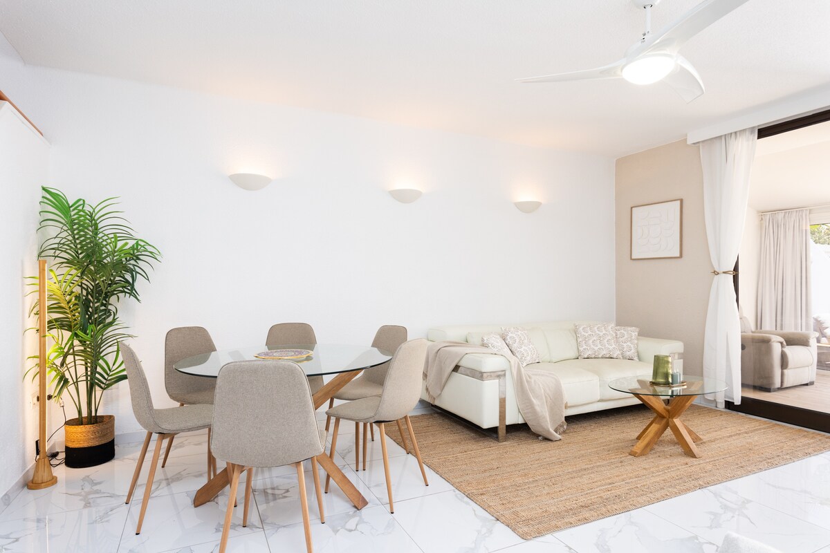 Este encantador apartamento moderno está cuidadosamente renovado para ofrecer el mejor ocio y relajación. Cuenta con una cocina abierta totalmente equipada con un amplio comedor luminoso y una sala de estar luminosos, que conduce a la gran terraza y vistas al jardín. El apartamento tiene un dormitorio cómodo con armario empotrado y un moderno baño con ducha. El complejo ofrece una piscina comunitaria exclusiva para los residentes y una variedad de excelentes restaurantes. La playa está a solo 10 minutos a pie.