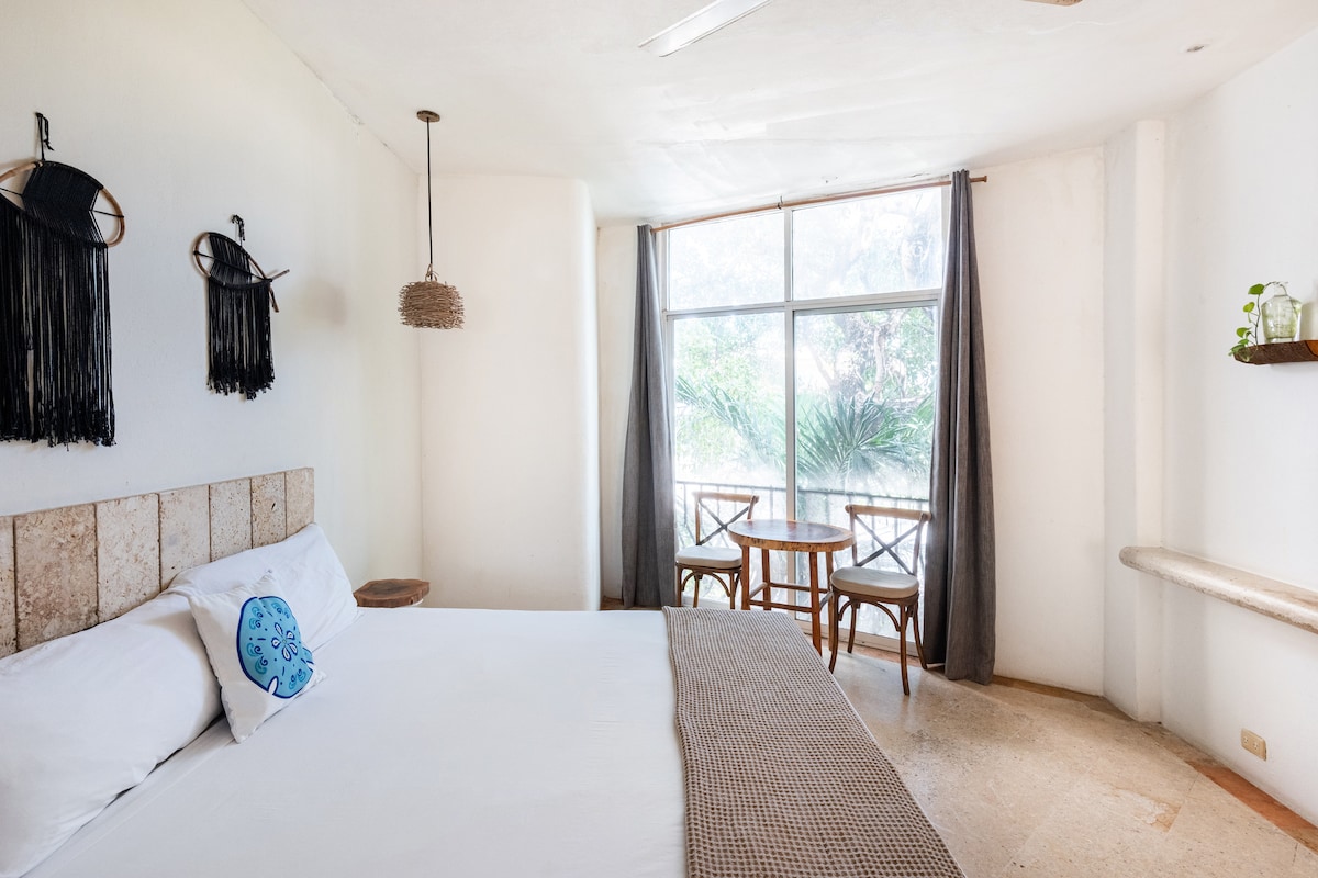 Estudio privado con cama matrimonial, closet, baño privado y área ideal para realizar tu trabajo desde la comodidad de tu casa. ANANA cuenta con un hermoso jardín central, el internet más rápido de la ciudad, una cocina común totalmente equipada y la más fantástica comunidad de nómadas digitales en Playa del Carme; en la cual las personas pueden vivir con felicidad! ¡BIENVENIDO A ANANA COLIVING! Te estamos esperando!