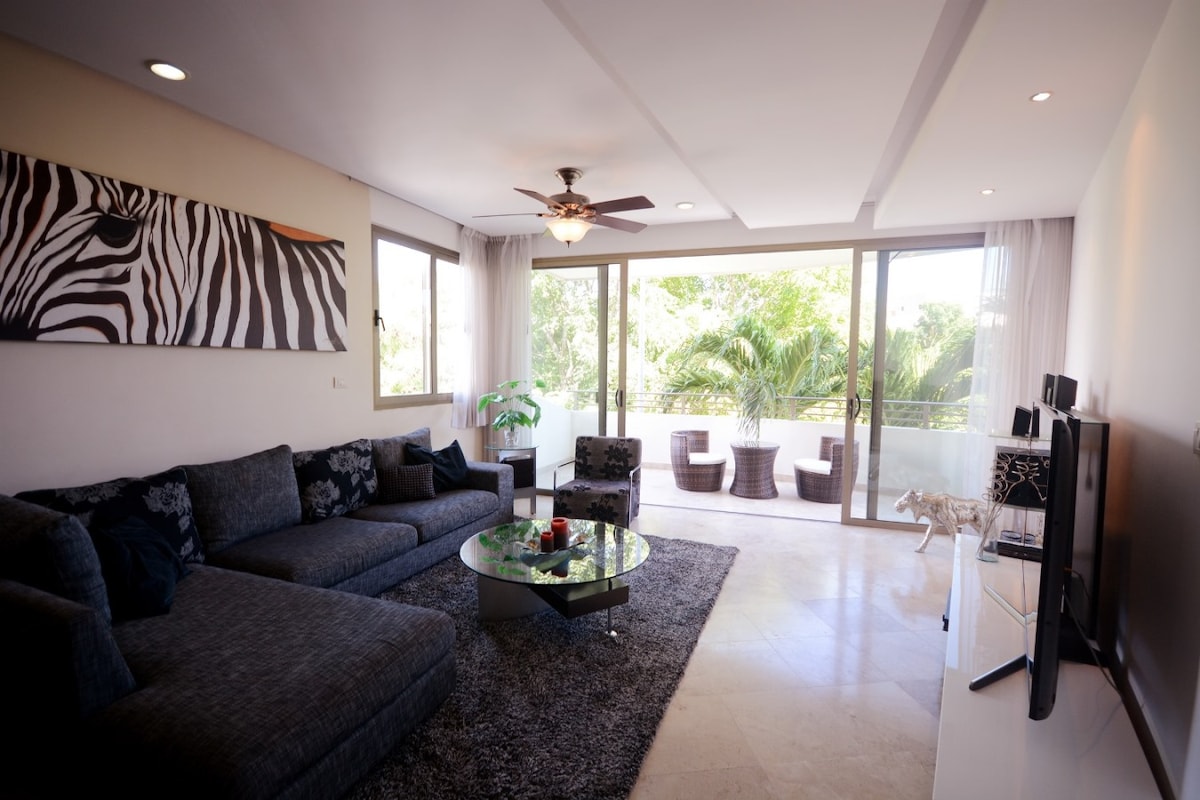 Lovely 1 Bedroom, all furhished and equipped for 6 (PAX) with 2 nice common pools area, Jacuzzi, BBQ, A/C, Gym, Security 24/7, Parking, just steps from 5th AVE and 2 Minutes walk to the famous Mamitas Beach ... the tranquility of the Mexican Caribbean. Great option for who is looking for a place safe in the downtown, the beach, Supermarkets, cafés, stores, artisan shops and also in a quiet Condominium in the heart of Playa del Carmen. Guests will have immediate attention 24/7.