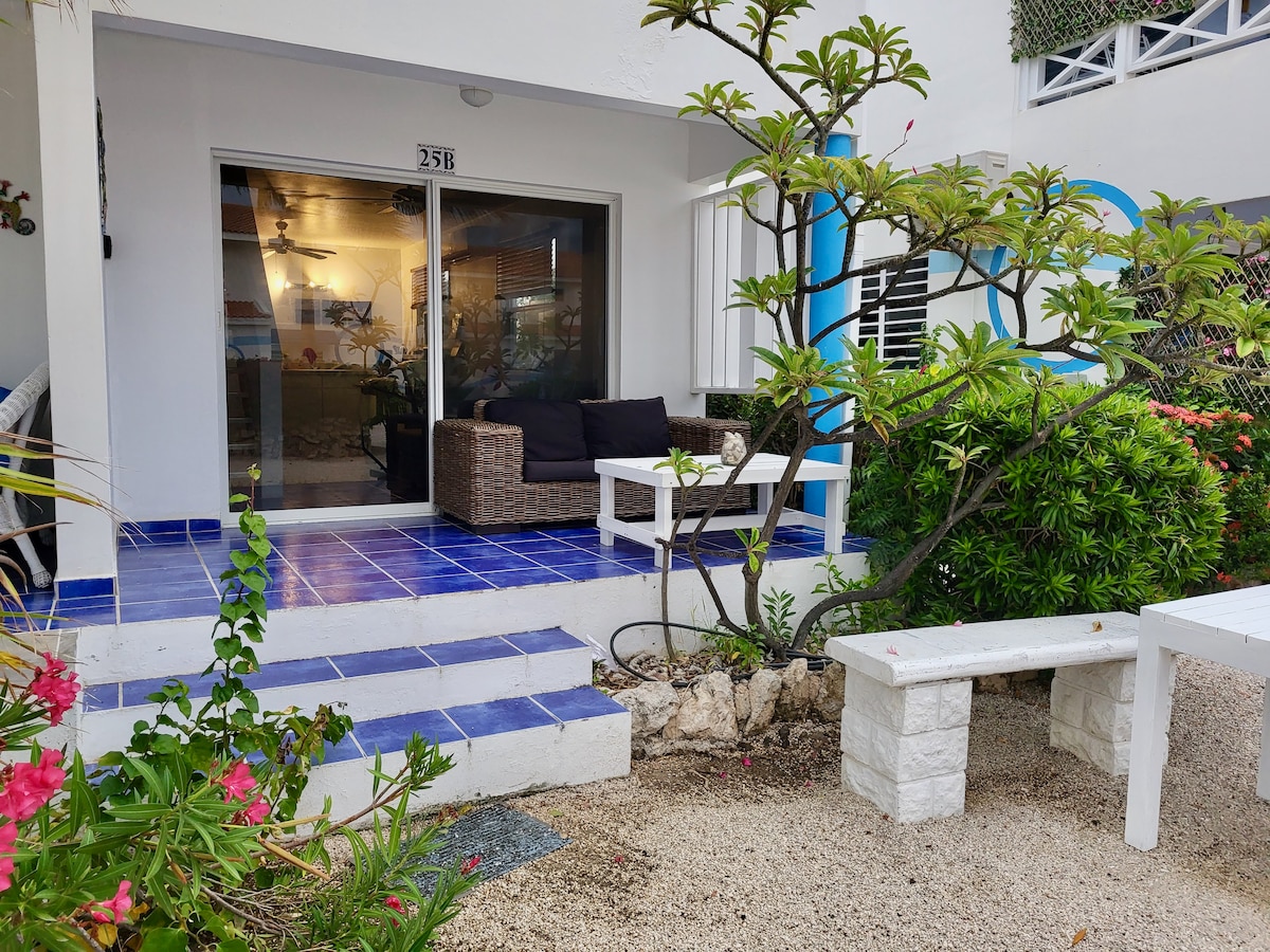 Relájate en esta encantadora casa adosada en Marazul Dive Resort en el punto oeste de la isla. Con un 1 dormitorio en la planta superior con una cama tamaño king con su propio patio y baño, también puedes encontrar un sofá cama en la planta baja con capacidad para dos personas, además, totalmente climatizado con otro baño. patio en la planta baja con barbacoa con fácil acceso a la piscina en el centro vacacional. A 3 minutos a pie de la playa con opciones para caminar otros 5 minutos hasta la popular playa de tortugas. La relajación está 100% garantizada