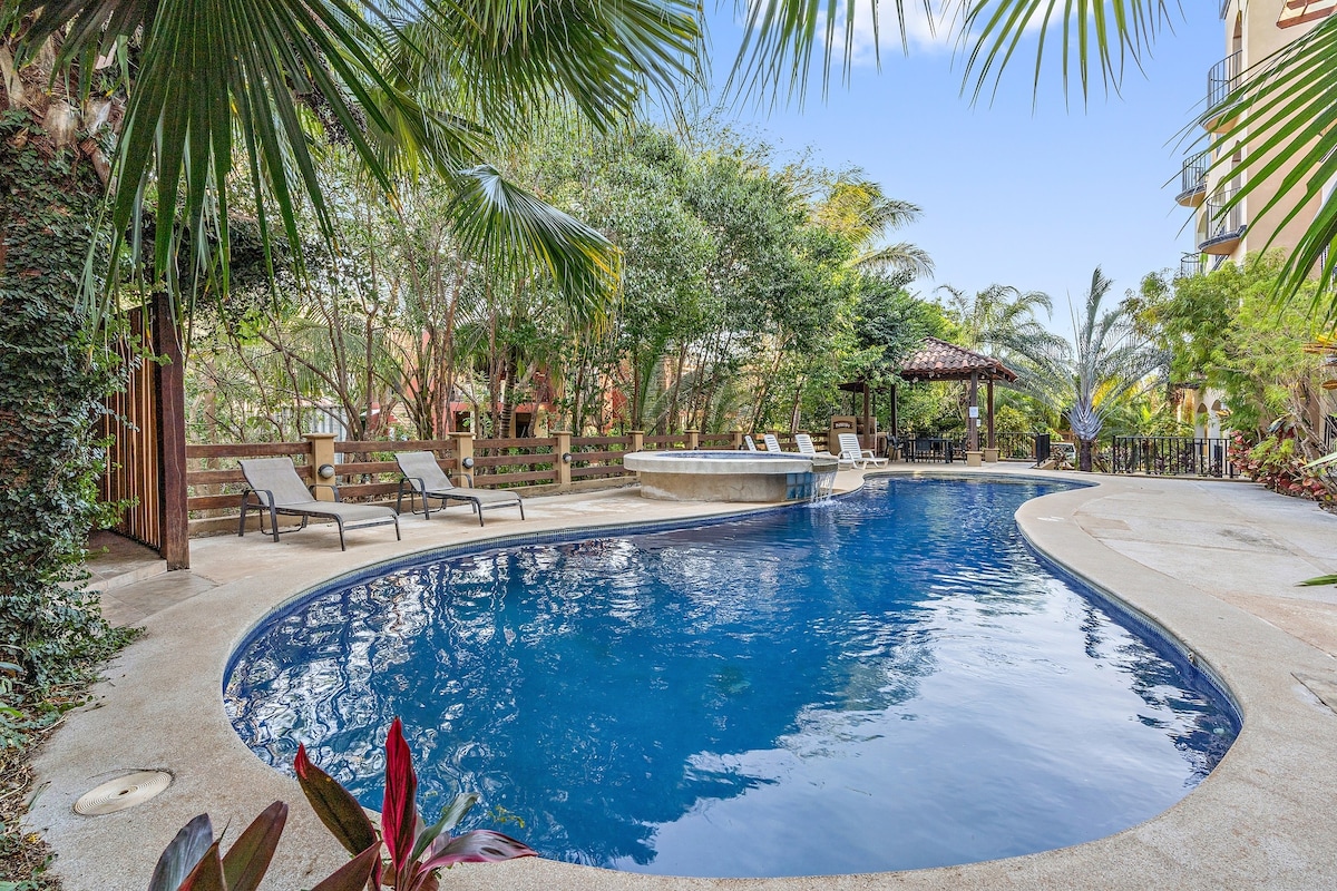This beautifully furnished and tropical themed condo is located in the beachfront community of Playa Langosta. This 2 bedroom and 2 bathroom condo comes fully equipped and ready to make your Costa Rican vacation the best it possibly can be! This beautifully decorated condo comes furnished with traditional Costa Rican wood and features artwork and pieces from local artists. this property allows guests direct access to the more quiet and private beach of Langosta while still being close to town!