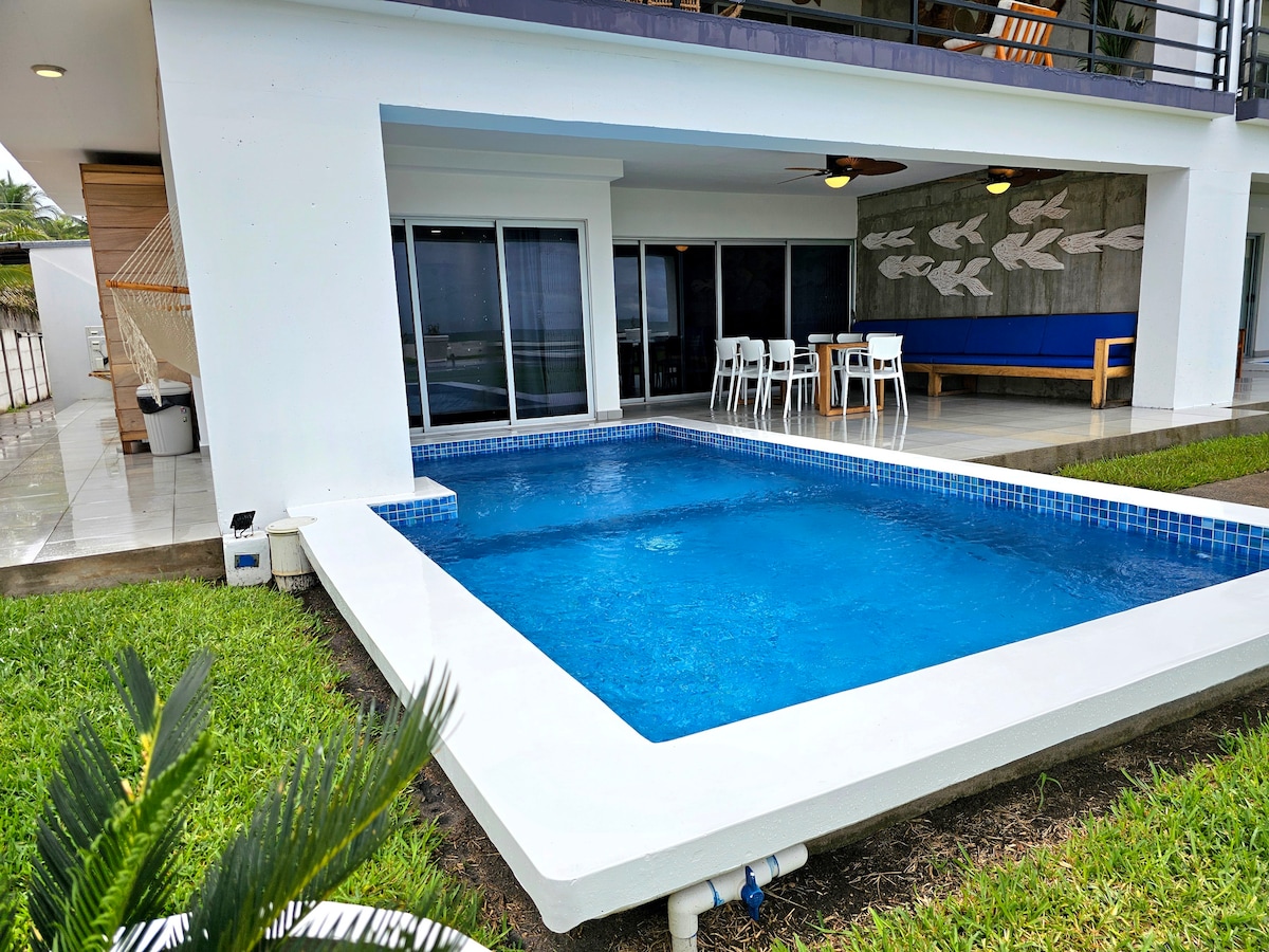 Encantador apartamento, donde la comodidad se combina con el lujo frente al mar. Ubicado a solo 25 minutos del aeropuerto. Te encontrarás inmerso en un paraíso costero, rodeado de comodidades y servicios convenientes. Con una vista pintoresca de la costa Salvadoreña, el apartamento ofrece un refugio sereno y relajante. Imagina despertarte cada mañana con el suave murmullo de las olas y disfrutar de impresionantes puestas de sol desde la comodidad de tu terraza privada