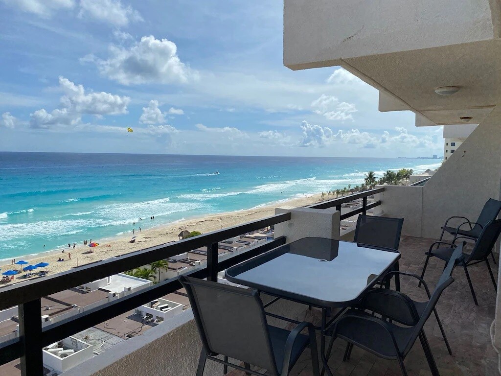 This beautiful apartment will make you enjoy paradise, you can feel the white sand of the Caribbean, enjoy the beautiful beach and have incredible views from sunrise to sunset. It is ideal for families, couples, friends and honeymooners. It has a privileged location we are a few steps from Plaza Kukulkán, Plaza la Isla, 10 minutes from the most popular nightclub area, and 20 minutes from the airport.