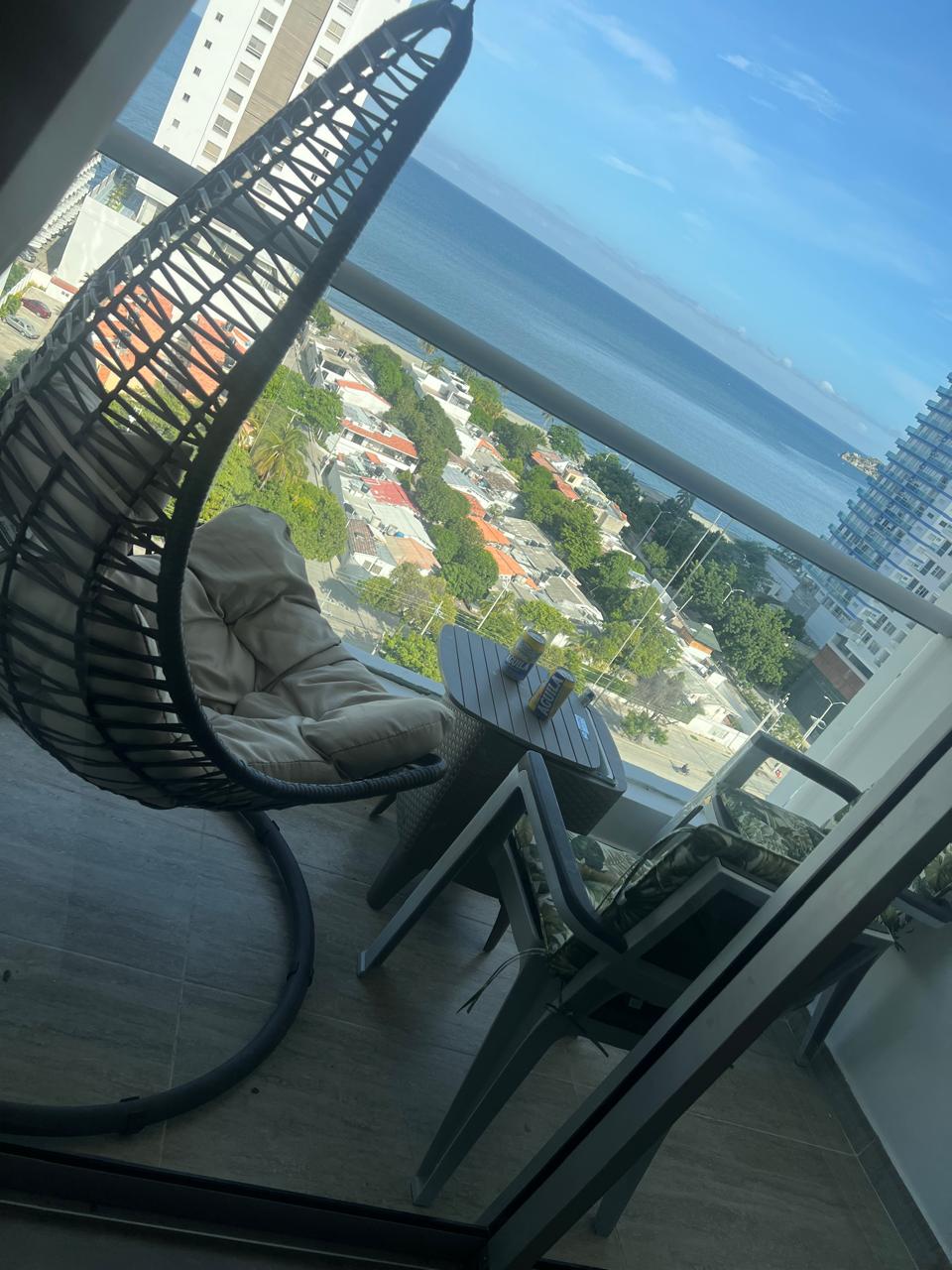 Te prometemos que la vista desde nuestro balcón te va a encantar, sobretodo los atardeceres!!! Relájate unos días en un apto. moderno en probablemente uno de los mejores Beach Club de Santa Marta! El apartamento cuenta con Wifi y cocina totalmente dotada. En el edificio puedes encontrar Piscinas, Jaccuzzi, Bar, Restaurante, acceso privado a playa y mas. Carpas en playa son propias del beach club (gratis). La playa es muy tranquila y con poca gente (comparado con el Rodadero)