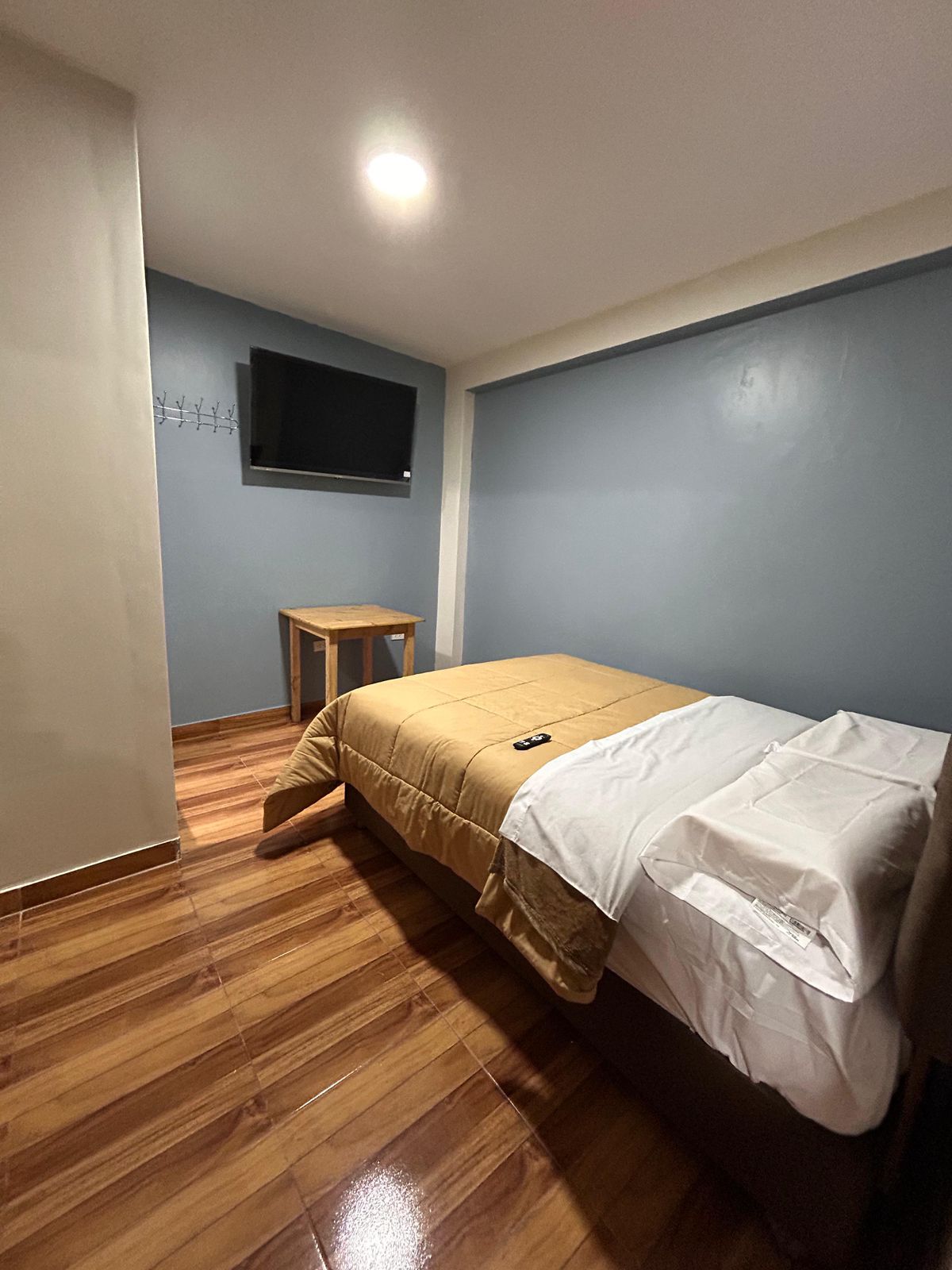 Disfruta de la sencillez de esta tranquila y céntrica habitación, ubicado a 3 cuadras de la plaza de armas, en todo el centro histórico de Cajamarca. Cuenta con baño privado, agua caliente, internet y cable. Ideal para estancias cortas o largas.
