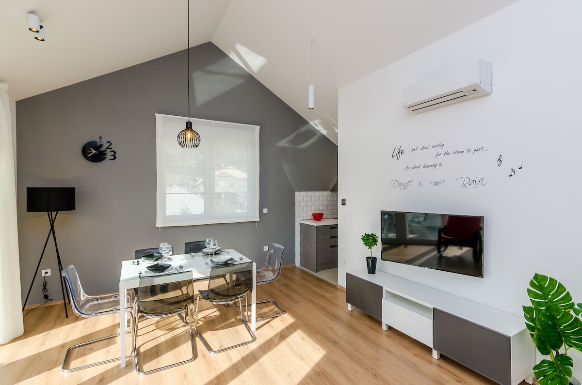 Un refugio tranquilo sobre la bahía de Gruž, con una terraza privada con vista al mar, ideal para parejas y para disfrutar de la puesta de sol. A solo unos minutos de playas, restaurantes y ferris. El casco antiguo está a 5–7 minutos en Uber, o puede tomar el autobús cercano que pasa cada 30 minutos y tarda 15 minutos en llegar a la ciudad. Luminoso, moderno, con wifi y aire acondicionado. Ideal para una escapada relajante y romántica.