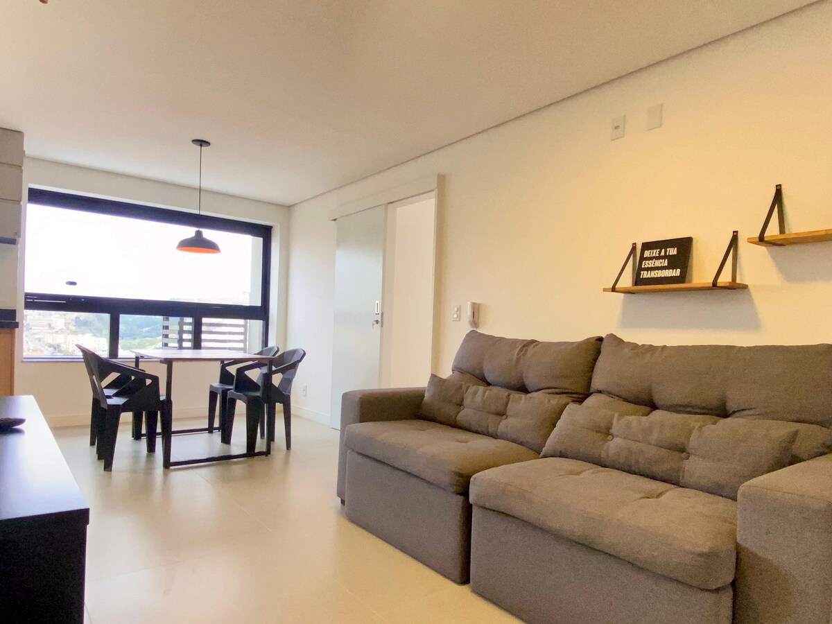 Apartamento nuevo y excepcional para relajarse y disfrutar de lo mejor de Poços. Edificio en la calle principal de la ciudad, en la zona central, cerca de todo, con conserje 24 horas, ascensor, azotea con gimnasio, ludoteca, spa/jacuzzi, pub/sala de juegos y zona gourmet; apartamento totalmente amueblado y equipado, muy funcional y cómodo. Fácil autorregistro, excelente Internet, cocina completa, espacio de trabajo, Smart TV, ventilador y espacio de garaje cubierto. Proporcionamos toallas, sábanas y cubiertos