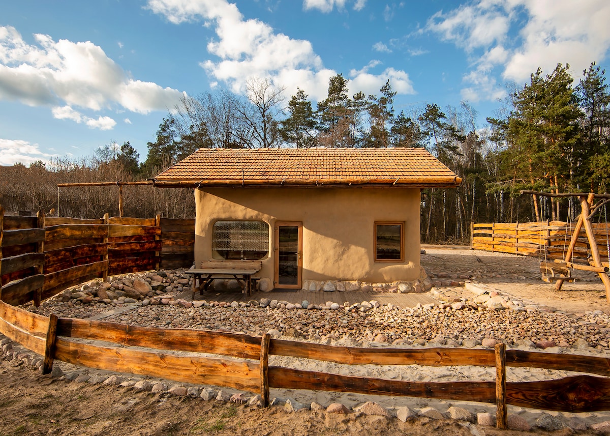 Me gustaría ofrecerle una estancia en una cabaña de paja y barro. La casa fue construida en 2018, con tecnología natural, lo que la hace respetuosa con el medio ambiente y con las personas y animales que la habitan. La casa está situada cerca de un bosque, con vistas a los campos y prados, gracias a lo cual la mente tiene la oportunidad de relajarse en un lugar tranquilo, en plena naturaleza. La ciudad más cercana es Uniejów, a 7 km de distancia, donde, entre otras cosas, se puede disfrutar de un baño en las piscinas termales.