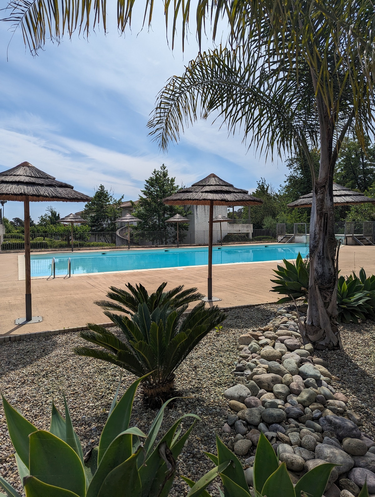 ¡Bienvenido a nuestra suite! Este alojamiento cálido y luminoso que ofrece una habitación cómoda con baño privado, será perfecto para una escapada romántica. Diseñada para alojar hasta 2 personas, esta joya es la escapada ideal para sus vacaciones. Esta espléndida Suite, con una superficie de unos 45 m², con impresionantes vistas a una magnífica piscina le garantiza un momento de relajación incomparable.