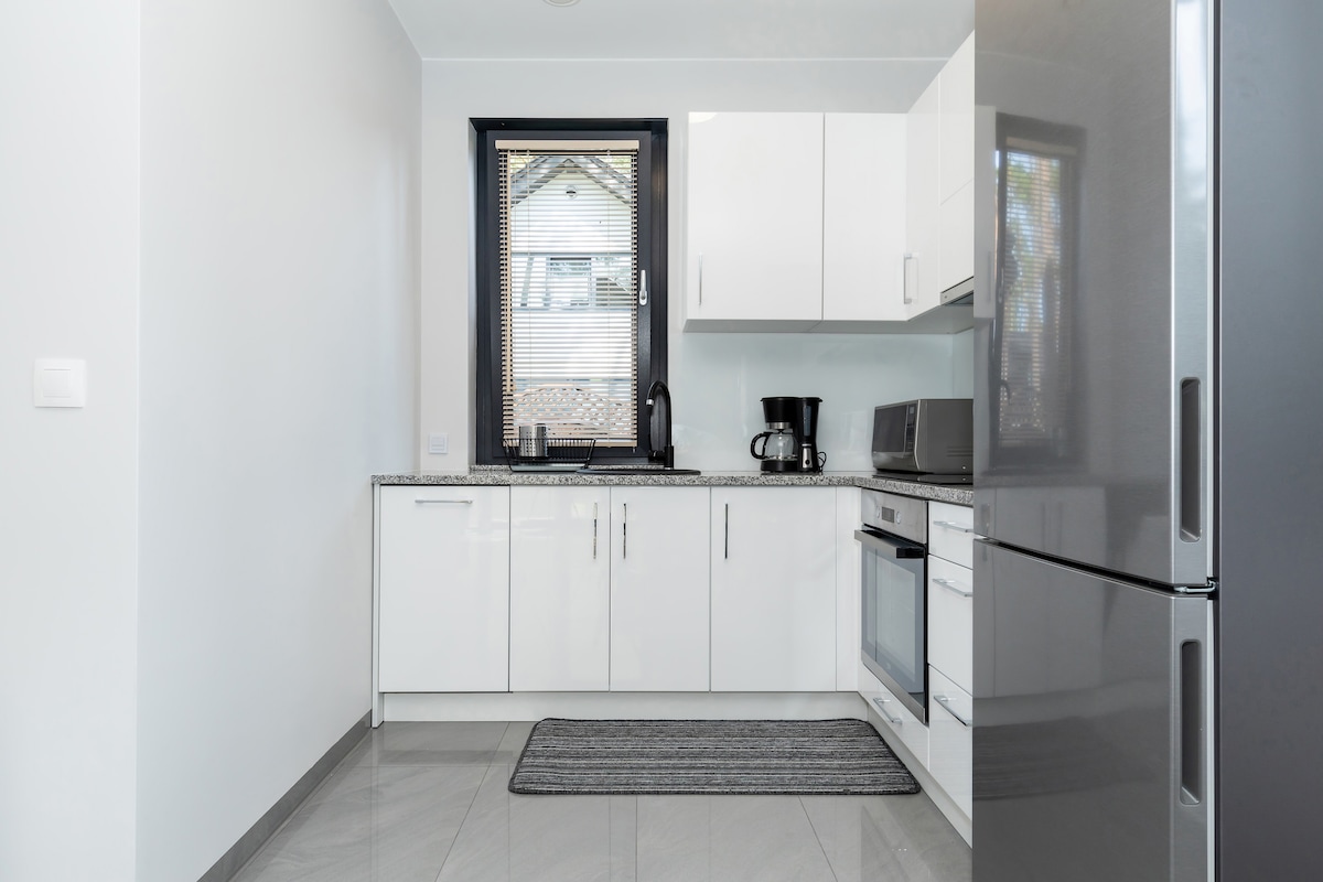 Hermosa casa nueva adaptada para 6 personas con baño y cocina. Totalmente equipada. En la primera planta hay 2 habitaciones. En la planta baja hay un salón con cocina americana (nevera grande, lavavajillas, microondas, hervidor, cocina de inducción) y un baño. Aparcamiento gratuito, parrillas, zona de barbacoa, bicicletas y atracciones para niños (trampolín, arenero, parque infantil, etc.). La casa se encuentra a 1700 m del mar, en una zona tranquila de Pogorzelica (a unos 15 minutos a pie, 3 minutos en coche).
