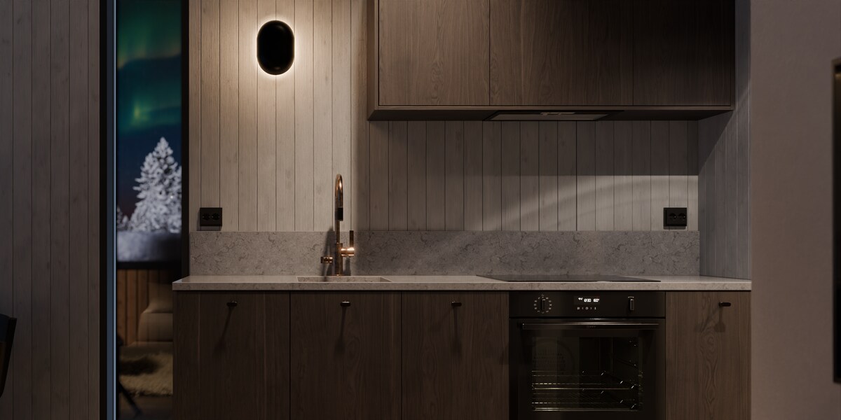 Nuestros iglús tienen un tamaño de 32 m² y pueden alojar de dos a cuatro personas. La cama doble motorizada está justo debajo del techo de cristal. Las camas adicionales separadas están hechas del sofá. Todos los iglús están equipados con un inodoro y una ducha, un televisor, un armario de secado para ropa de exterior. Todas las habitaciones tienen una pequeña cocina bien equipada con nevera, fogones, vajilla y cubiertos, hervidor de agua, cafetera, horno microondas y lavavajillas.