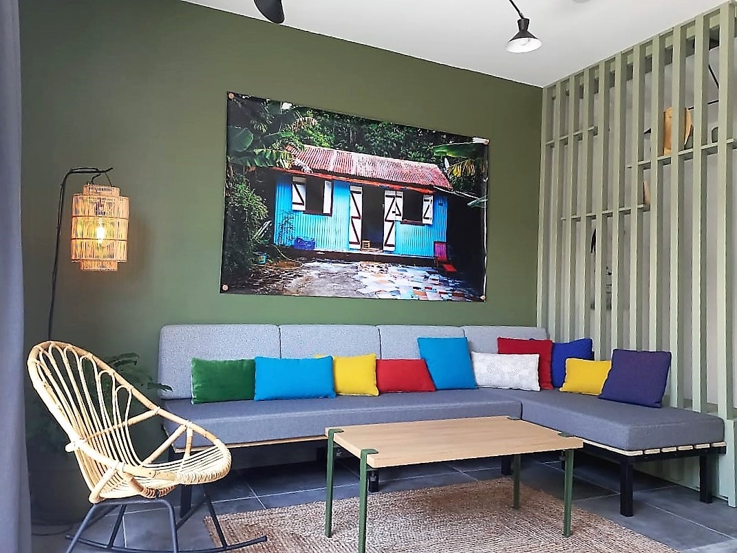 Recepción, simplicidad, tranquilidad y limpieza en un pequeño rincón verde (al final de un camino privado, antes de los campos de cañas) cerca del mar, tiendas y la ruta de los tamarindos que sirve a todos los lugares imprescindibles de la isla. Situado en una zona semi-campardía, nuestro alquiler está muy cerca de varios gallos cuyos cantos se escuchan mucho.